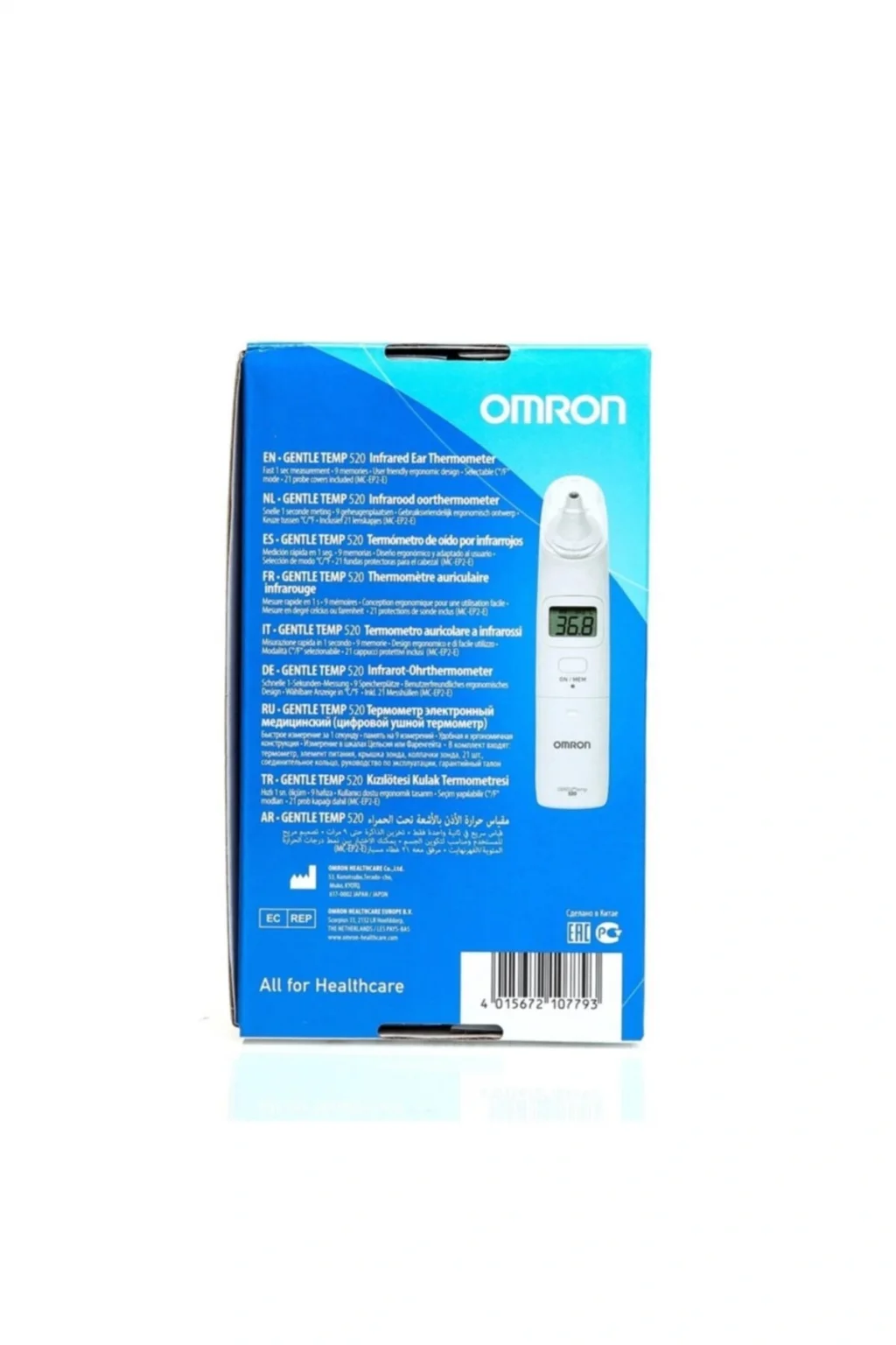 Omron Gentle Temp 520 Kızılötesi Kulak Termometresi Gentle Temp 520 kulak termometresi, üst düzeyde doğruluk sağlayan Gentle Temp 521 teknolojisinin aynısını kullanmakta olup, bir saniyelik ölçüm ve belirli bir zaman diliminde sıcaklık değişimlerini takip etmeye ve eğilimleri izlemeye yarayan en çok dokuz okuma hafızası da dahil olmak üzere gelişmiş özelliklerinden bazılarını içerir. ; Ayrıca, 21 prob kapağıyla birlikte elinize ulaşır. ; Sıcaklıklar büyük LCD'de ekranda gerek Santigrat derece gerekse Fahrenhayt derece olarak görüntülenebilir. ; TEKNİK ÖZELLİKLER: Hafıza: 9 Okuma Ölçüm Tipi: Kulak 1 Saniyelik Hızlı Ölçüm: Evet °C / °F Seçimi: Evet Prob Kapakları Dahil: Evet Bipleyici: Evet Değiştirilebilir Pil: Evet Otomatik Kapatma: Evet Ürün Ağırlığı (g): 85,00 Öğe boyutları (mm): 36 x 56 x 161 KUTU İÇERİĞİ: ?Gentle Temp 520 Termometre 1x CR2032 Pil Prob Başlığı 21x Prob Kapağı Bağlantı Halkası Kullanım Kılavuzu;