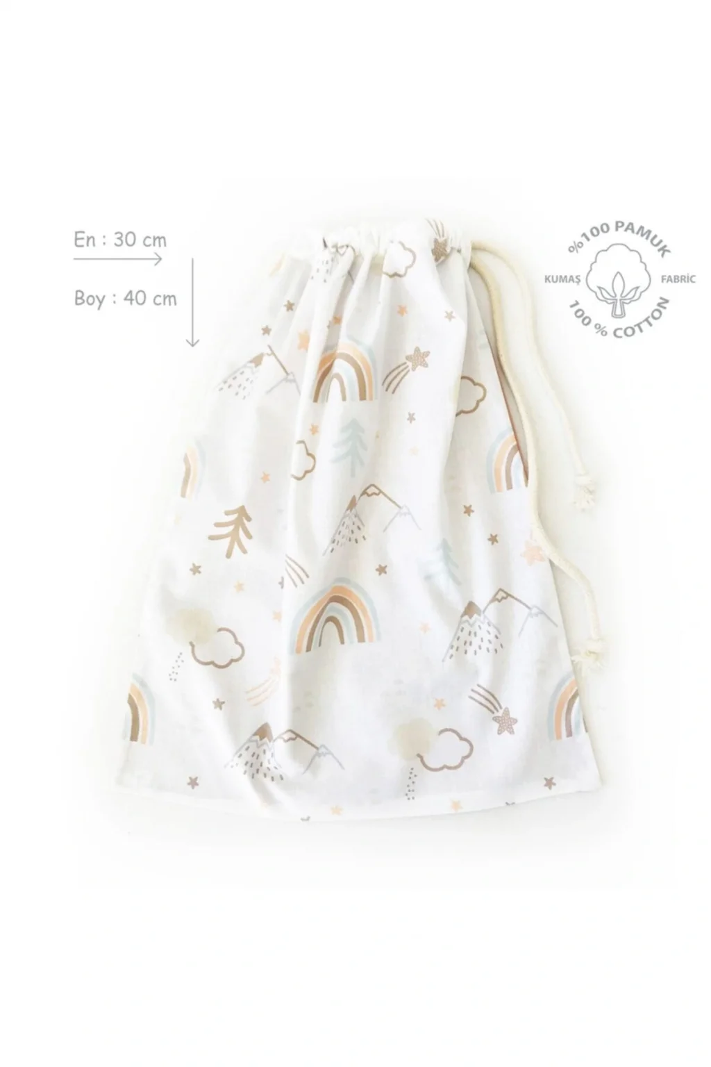 %100 doğal bitkisel elyaf olan “pamuklu kumaştan” imal edilmiştir. ; Her daim elinizin altında pratik kullanım için uygundur. ; Kirli, kıyafet ve bez kesesi olarak kullanılabilir. ; Her mevsim kullanılabilir. ; 30x40 cm ölçülerindedir. ; *30 derecede sıvı deterjan ile makinede hassas yıkama önerilir. ; *ürünlerde kişiselleştirme seçeneği bulunmamaktadır. ; * içi boş olarak gönderilir, görselde ürünün hacmini görmeniz için dolu gösterilmiştir.;