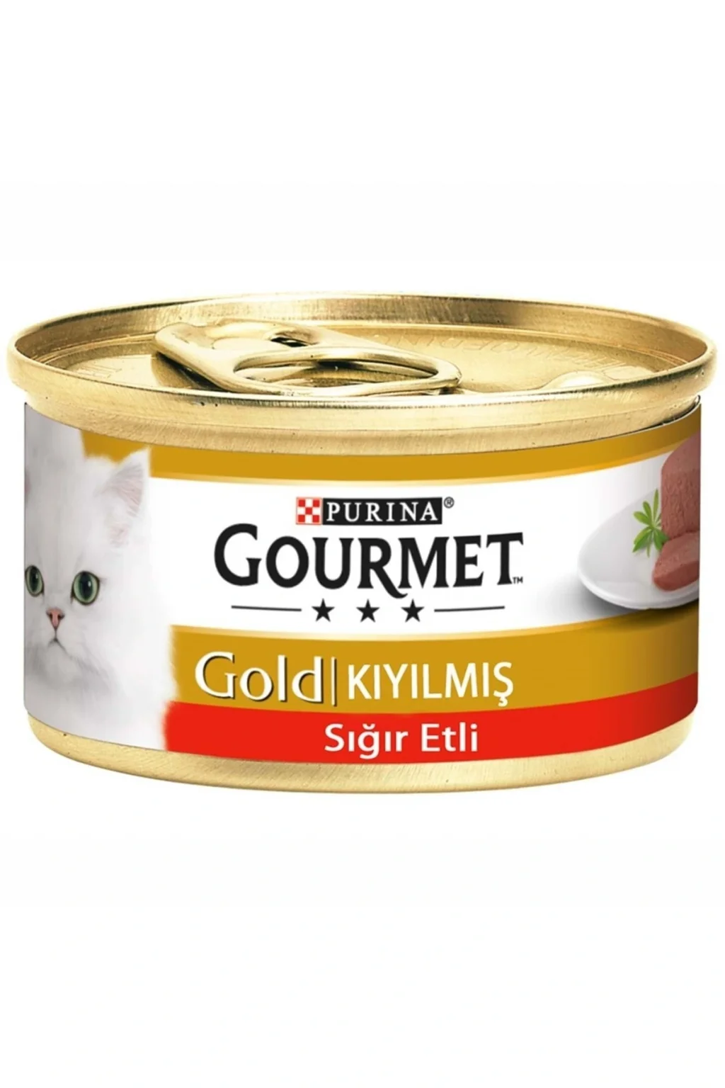 Gourmet Gold Sığır Etli Kedi Konserve Maması kıyılmış etten üretilmiştir. ; Sığır etinin kahverengi bir sos ile karışımı kediler için vazgeçilmez bir lezzet sunmuştur. ; İçerik Et ve hayvansal türevler (%4'ü sığır eti) Sebze proteini ekstraktı Balık ve balık türevleri Bitkisel türevler Mineraller Çeşitli şekerler Analiz Tablosu Ham Yağ %2.3 Ham Kül %3 Sığır Eti Eti % 4 D3 Vitamini 1110 Iu: 140 Iu / Kg E Vitamini Alfa Tokoferol : / Kg 10 Iu. ; Mineraller Ham Selüloz %0.1 Bakır Sülfat Bakır / Kg 1.1 Mg Ham Protein %11 Bitkisel Protein Özü;