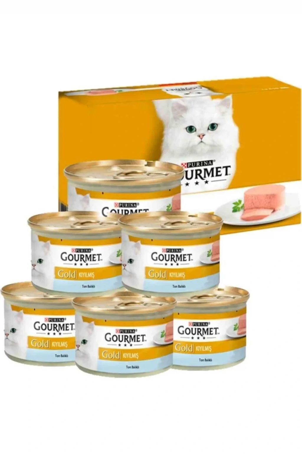 Gourmet Gold Kıyılmış Ton Balıklı Kedi Maması 85 gr 6 AL 5 Öde Kediler için, kıyılmış gerçek etle özenle hazırlanmış, pürüzsüz, ton balıklı, konserve kedi mamasıdır. Konservenin İçeriği; Et ve et türevleri, balık ve balık ürünleri (% 4 ton balığı), sebze kaynaklı ürünler, mineraller, çeşitli şekerler. Konservenin Analizi; Protein % 11, yağ, % 7,0, ham selüloz % 0,1, su % 77, inorganik madde % 3, vitamin A 1,440 IU/kg, vitamin D3 220 mg/kg, demir 10 mg/kg, iyot 0,2 mg/kg, bakır 0,9 mg/kg, mangan 1,9 mg/kg, çinko 10 mg/kg, koruyucular. Beslenme Tavsiyesi; * 4 kg vücut ağırlığına kadar olan yetişkin kediler için, iki ayrı öğün olarak günde 3 - 4 kutu ile beslenmesi tavsiye edilmektedir. * Hamile ve süt veren kediler için, yiyebildiği kadar verilmesi tavsiye edilmektedir.