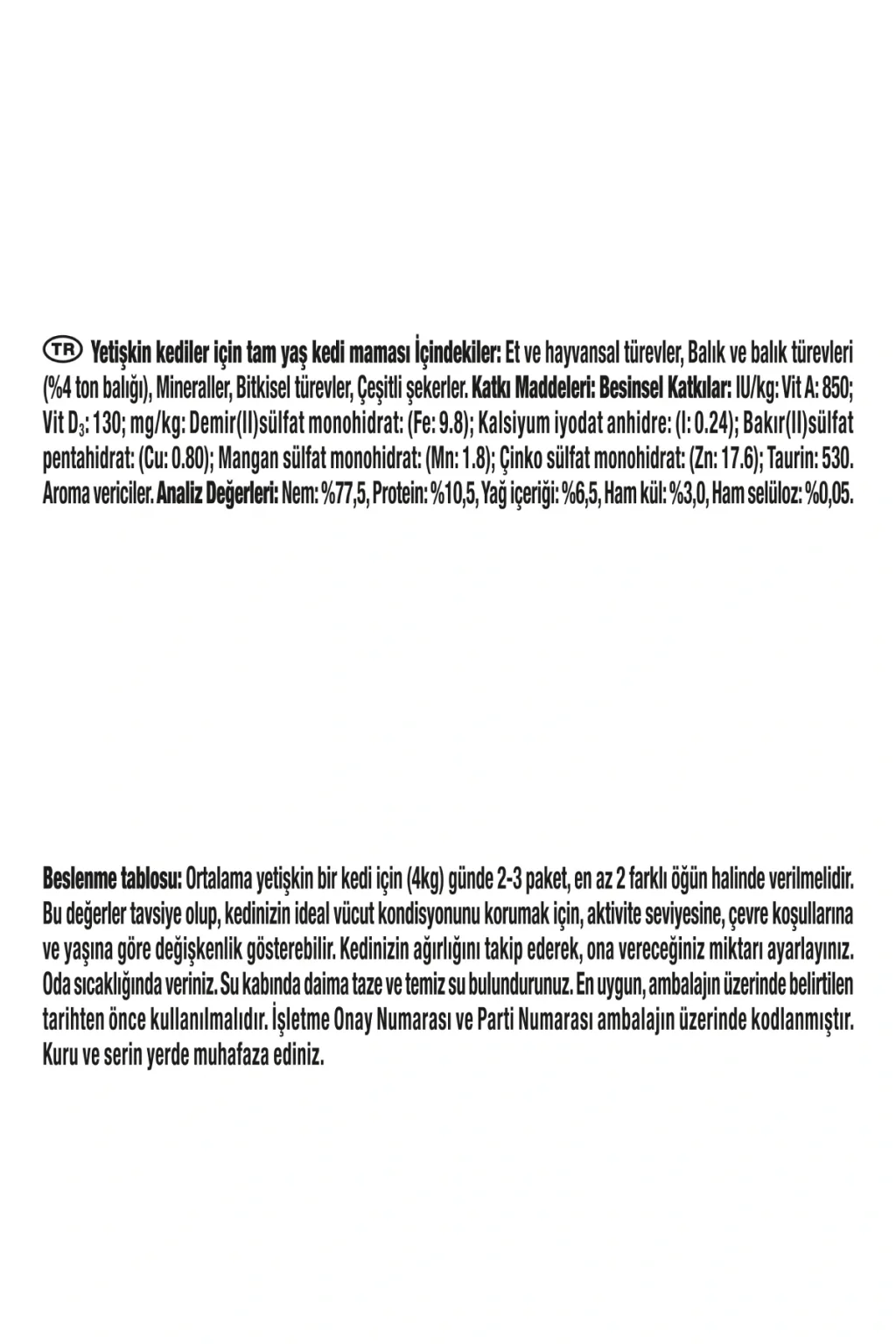 Gourmet Gold Kıyılmış Ton Balıklı Yaş Kedi Maması 85 gr Pro Plan Gourmet Gold Ton Balıklı Kedi Konserve Maması kahverengi soslu et taneciklerinden üretilmiştir. ; Ton Balığı bir sos ile karışımı kediler için vazgeçilmez bir lezzet sunmuştur Malzemeler: İşlenmiş et ve et ürünleri (% 4 ton balığı), bitkisel protein özü, mısır, tarafından balık ve balık yan ürünleri, mineraller, bakır sülfat (bakır / kg 1.1 mg) yan ürünleridir. ; Besin içeriği: Ham protein% 10, ham yağ% 2.3 Ham kül% 1,7, ham selüloz% 0,5 Vitamin C: / kg D3 vitamini 1110 IU: 140 IU / kg E vitamini (alfa tokoferol) : / kg 10 IU. ; vitamin seviyeleri tüm raf ömrü garantilidir. ; Tavsiye Beslenme: Ortalama ağırlığı (4 kg) erişkin bir kedi için günde 3 ila 4 kutu gerektirir. ; Besleme tercihen iki öğün halinde verilmesi tavsiye edilir. ; Oda sıcaklığında servis yapın fabrika seri numarası ve kayıt numarası kutu altındadır ne kadar tazeliğini korur 30 ° C ve% 75 bağıl nem 5 arası sıcaklıkta saklayın. ; Raf Ömrü: 24 aydır Net Ağırlık: 85 gr Kargo Teslim Uyarısı : Sipariş paketi kargo görevlisinin yanında açılmalı ve kontrol edilmelidir. ; Kargo görevlisinin dışında açılan yada teslim alınan ürünlerin iadesi kabul edilmeyecektir. ; Ürünün hasarlı veya eksik çıkması durumunda kargo görevlisine (Hasarlı Ürün Tespit Tutanağı) hazırlatılmalı, paket teslim alınmamalı ve durum form ile birlikte şirketimize bildirilmelidir. ; Arızalı ürünler gönderilmeden önce mutlaka firmamızla irtibata geçilmelidir. ; Şirketimizin bilgisi olmadan gönderilen iade kargolar kabul edilmeyecektir.;