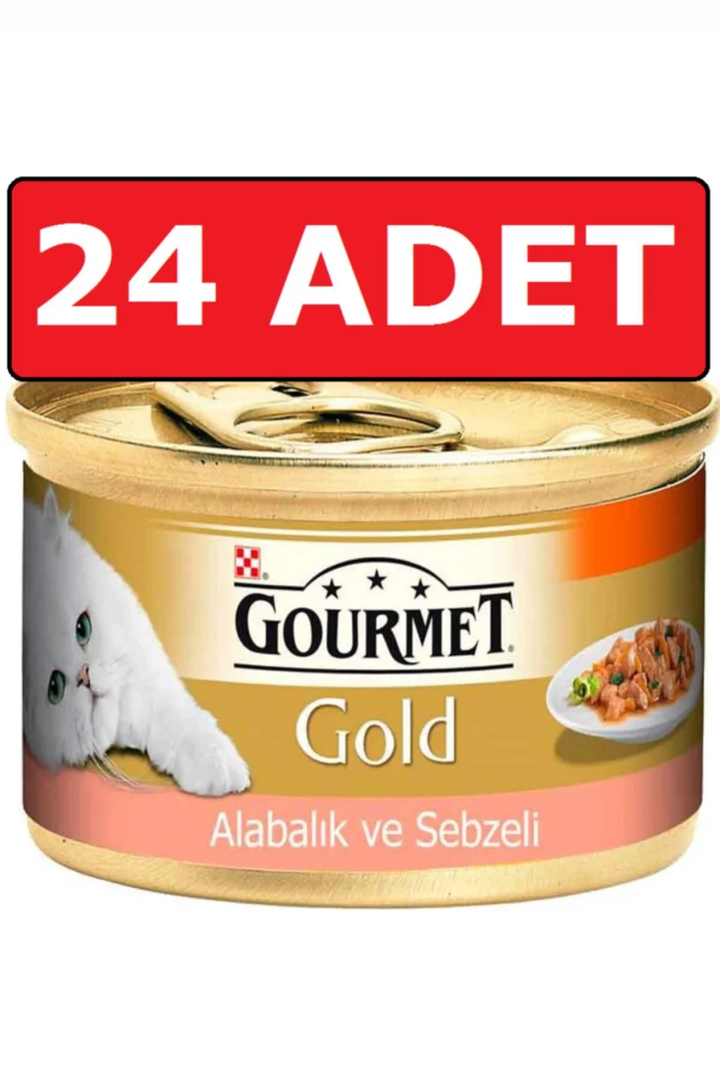 Purina gourmet gold parça etli alabalıklı ve sebzeli kedi konservesi 24 adet 85 gr yaş mama Proplan Gourmet Alabalık ve Sebzeli Kedi Konservesi 85 Gr Soslu et taneciklerinden üretilmiştir. ; alabalık etinin sos ile karışımı kediler için vazgeçilmez bir lezzet sunmuştur Yedirme miktarı : Proplan Gourmet Gold Alabalık ve Sebzeli Kedi Konserve Maması aktivite seviyeleri normal olan yetişkin kediler yaş 1-7 yaş için tasarlanmıştır. ; Erişkin kedilerin günlük enerji gereksinimleri dikkate alınarak tüm ve biyolojik olarak aktif besin maddeleri için tamamen dengeli yiyecek olarak tasarlanmıştır. ; besleme özellikleri Protein miktarı içeriği % 7,5-12 dir. ; Optimum kas korumak için gereken miktardır ve konservede bu miktara göre hazırlanmıştır.Yağ miktarı % 3,7-7,0 arasındadır ve mu miktar bir kedinin günlük enerjisini karşılamaya yeter miktardır. ; Sağlıklı ve güçlü dişler ve iskelet için mineraller, kalsiyum içerir. ; İyi sindirim için gerekli olan selüloz proplan Gourmet konservelerde yeteri kadar kullanılmıştır. ; Taurin Sağlıklı kalp ve iyi görme için gerekliği bilinmektedir.Optimal gereksinimi karşılamak için konserveye katılmıştır. ; İçindekiler : İşlenmiş et ve et ürünleri, Sığır eti eti % 4, bitkisel protein özü, mısır, tarafından balık ve balık yan ürünleri, mineraller, bakır sülfat bakır / kg 1.1 mg yan ürünleridir. ; Besin içeriği: Ham protein 10, ham yağ 2.3 Ham kül 1,7, ham selüloz 0,5 Vitamin C: / kg D3 vitamini 1110 IU: 140 IU / kg E vitamini alfa tokoferol : / kg 10 IU. ; Beslenme Tavsiyesi: 4 kg vücut ağırlığına kadar olan yetişkin kediler için, iki ayrı öğün olarak günde 3 - 4 kutu ile beslenmesi tavsiye edilmektedir. ; Hamile ve süt veren kediler için, yiyebildiği kadar verilmesi tavsiye edilmektedir.;