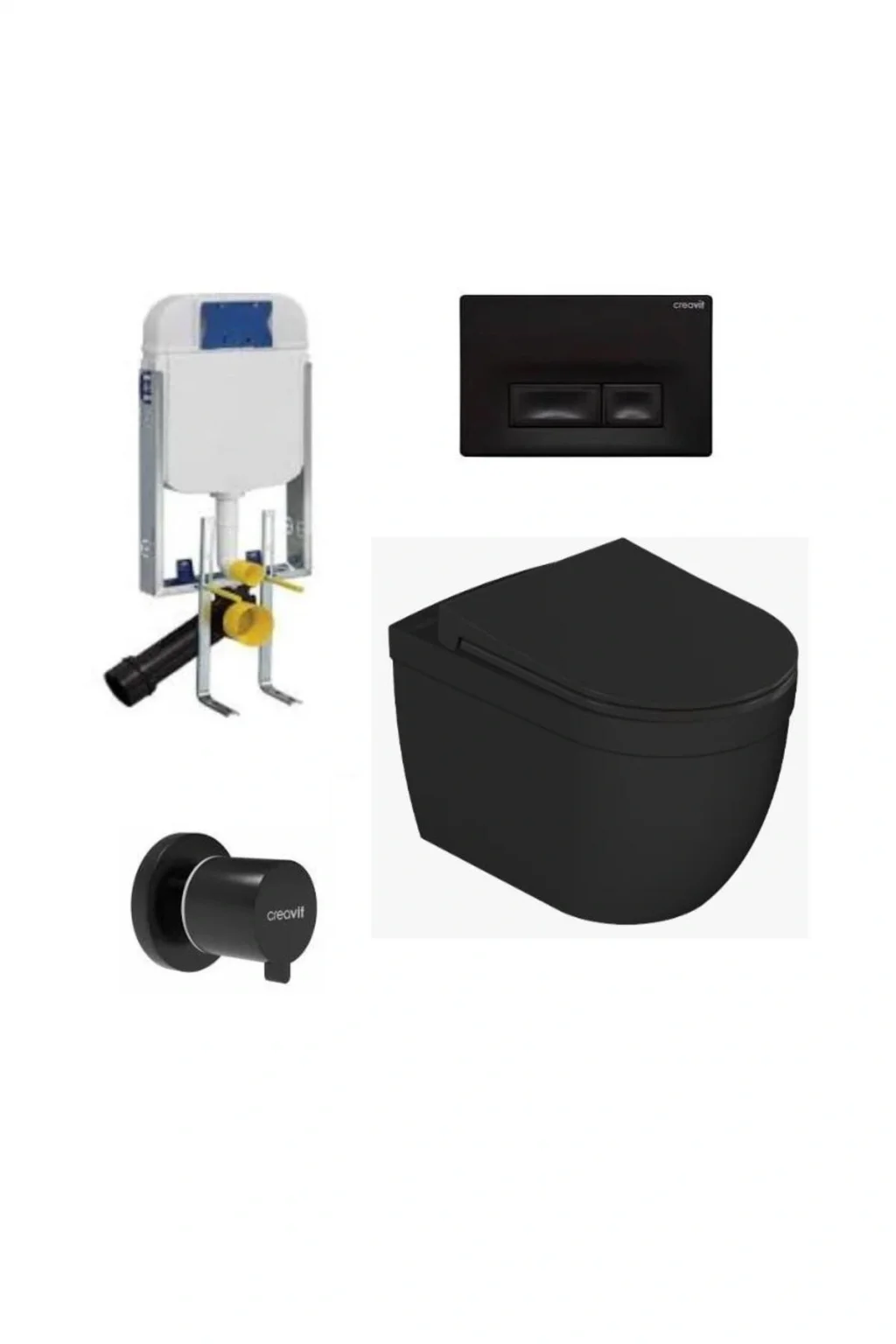 CREAVİT GÖMME REZERVUAR GÖVDE MAT SİYAH BASMA BUTON MAT SİYAH MAT SİYAH ARA KESME VALFİ DURA SİRİUS MAT SİYAH ASMA KLOZET MAT SİYAH DUROPLAST YAVAŞ KAPANIR KAPAK STARAFOR İLE PAKETLEME GARANTİLİ ÜRÜNLER