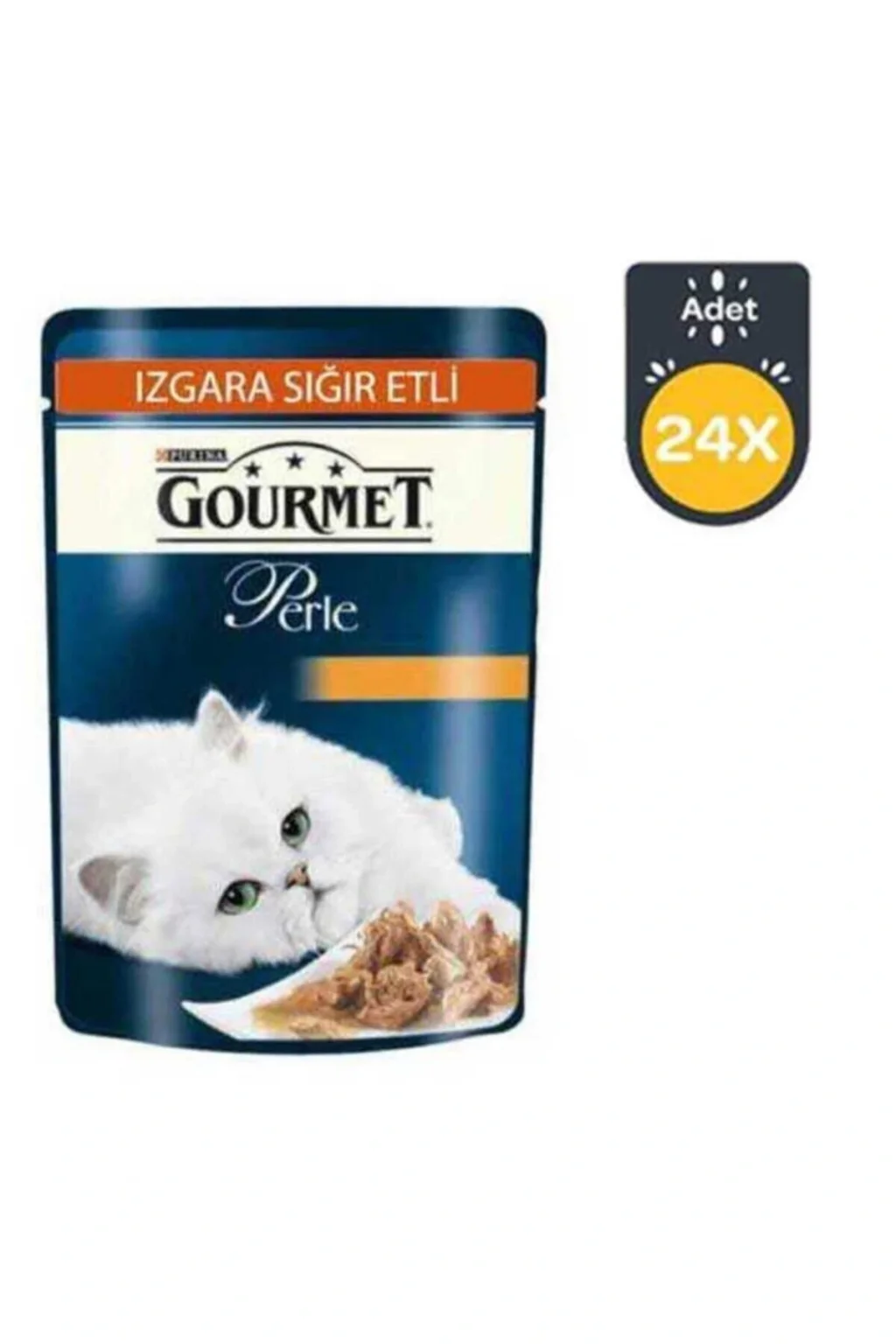 Gourmet Perle Izgara Sığır Etli Kedi Konservesi 85 GR; 24 ADET Yavruluktan çıkmış ve 4 kg civarında olan yetişkin kediler için ideal bir konserve mamadır; İçindekiler: Et ve et ürünlerisığır eti 4, Sebze protein ekstraktları, Balık ve balık ürünleri, Mineraller,Çeşitli şekerler Analiz Değerleri: Protein 14, Yağ İçeriği 2; 5, Ham Selüloz 0; 5, Nem 79, Ham Kül 2; 2 Beslenme Tavsiyesi: Yetişkin bir ortalama kedi için günde 4 adete kadar kullanılabilir; 4 adet konserve 2 farklı öğünde verilmelidir; Hamile ve süt veren kediler için yiyebildiği kadar verilmesi uygundur; Oda sıcaklığında servis yapılması tavsiye edilir; Ürünün ağzı açıldıktan sonra buzdolabında saklayınız ve 48 saat içerisinde kedinize tükettiriniz;