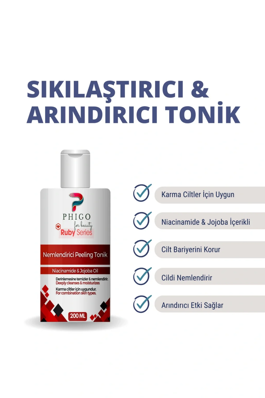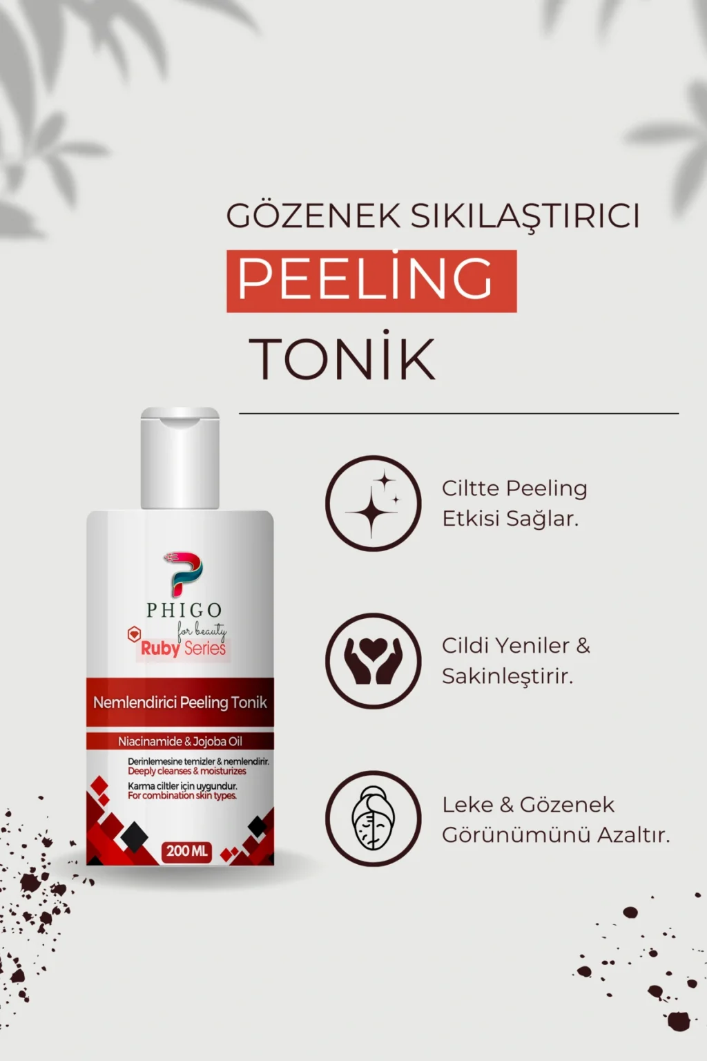 Tabii ki, işte Phigo Nemlendirci Peeling Tonik için bir ürün açıklaması önerisi: Phigo Nemlendirci Peeling Tonik Cildinize İleri Düzey Bakım Phigo Nemlendirci Peeling Tonik, cildinizi tazeleyen ve canlandıran benzersiz bir formül sunar. Gözenek sıkılaştırıcı etkisiyle bilinen bu tonik, içeriğinde bulunan niacinamide, jojoba yağı ve hindistancevizi yağı sayesinde cildinizi derinlemesine nemlendirir. Ana Özellikler: Gözenek Sıkılaştırıcı:Formülündeki özel bileşenler, cilt yüzeyini pürüzsüzleştirir ve gözenek görünümünü azaltır. ; Citte Peeling Etkisi:Cildinizi nazikçe peeling yaparak yeniler ve canlandırır, sağlıklı bir parlaklık kazandırır. ; Niacinamide İçerikli:Cildin dengesini korumaya yardımcı olan niacinamide, toniğin güçlü ve hafif formülüyle birleşerek etkili bir bakım sunar. ; Jojoba Yağı ve Hindistancevizi Yağı:Cildi derinlemesine nemlendiren ve yumuşatan bu doğal yağlar, kuruluğu önler ve cilde ipeksi bir dokunuş kazandırır. ; Leke Azaltıcı:Tonik, cilt tonunu eşitleyerek leke ve renk düzensizliklerini azaltmaya yardımcı olur. ; Kullanım Önerisi:Günde iki kez, temizlenmiş cilde uygulayarak Phigo Nemlendirci Peeling Tonik'in keyfini çıkarın. Yumuşak hareketlerle masaj yaparak toniği cildinize nüfuz ettirin. Ardından günlük nemlendiricinizi uygulayarak cildinizin ihtiyaç duyduğu bakımı tamamlayın. Phigo Nemlendirci Peeling Tonik ile cildinize özenli bir bakım sunun, sağlıklı ve genç bir görünüm elde edin.