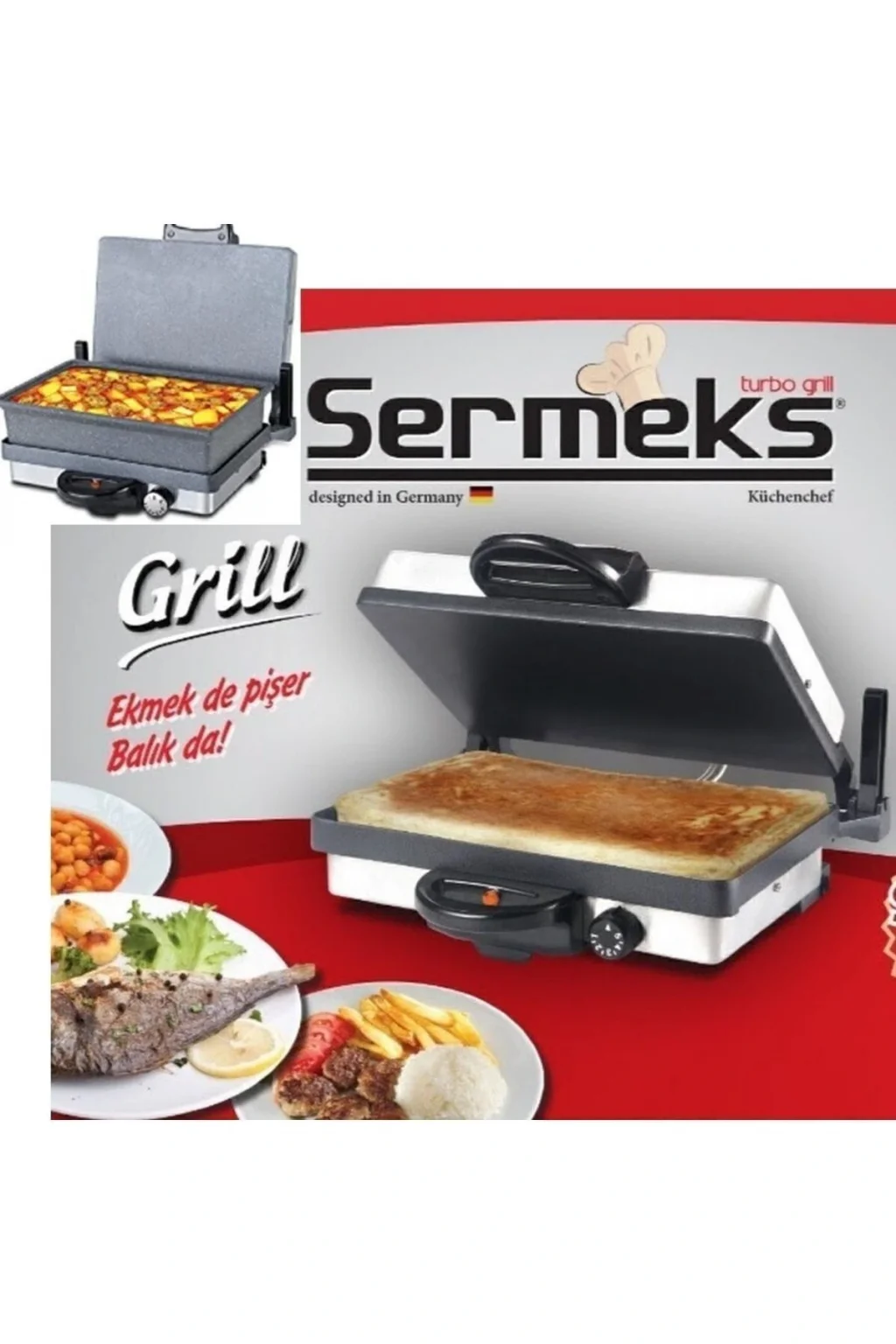 Sermeks Silex Turbo Granit Tavalı Inox Lahmacun Serme Bazlama Makinesi Sermeks Silex Turbo Granit Tavalı İnox Lahmacun Serme Bazlama Makinesi Menşei Türkiye Kutu Var, Açılmamış Durum Sıfır Garanti Süresi 3 Yıl ve üzeri Garanti Var, Başlamamış Renk Inox TÜRKİYE'DE İLK VE TEK PRESLİ ALÜMİNYUM TÜP REZİSTANS KULLANILAN EKMEK PİŞİRME MAKİNASI SERMEKS TURBO GRANİT GRILL ÇOK AMAÇLI PİŞİRİCİ SERMEKS Tescilli Markadır. Orijinal Üründür. 36 Ay Fabrika Garantilidir. Türkiye genelinde UPS Kargo anlaşmalı Kapıdan fabrikaya garanti hizmeti Bu ürün ; Granit PAN TAVALI Modeldir. Kutu içerisinde PAN TAVA vardır. Pişirici Tabla Ölçüsü 34cm x 22cm'dir. Ürün Ölçüsü : Derinliği 38cm, Genişliği: 34cm, Yüksekliği: 23cm Paket İçeriği ; 1. Sermeks Granit Grill 2. Lahmacun ve Pizza Tel Aparatı 3. Yağ Kabı Sermeks Grill'ler PAN TAVALI ve PAN TAVASIZ olmak üzere iki farklı şekilde paketlenip satışa sunulmaktadır. Yanmaz, yapışmaz granit yüzey Kek, Pan Kek, Lahmacun, Köy Ekmeği, Bazlama Ekmeği, Serme Ekmeği gibi hamur işlerini için ideal Ayarlanabilir termostatı sayesinde kıvamında pişirme özelliği Karadeniz Bölgemizde Bazlama Ekmeği Makinesi olarak bilinir. Evde doğal köy ekmeğinizi pişirin sağlıklı beslenin. Yağsız Pişirme özelliği et, balık ve tavuk ızgara Fırınlama özelliği ile güveç, kuru fasülye, biber dolması, patates kumpir Izgara, barbekü, fırın, ekmek makinesi, hepsi bir arada, Silex Sürekli kademeli ısı ayar düğmesi Isı Kontrol lambalı Paslanmaz Çelik Inox Gövde 2000 watt, 220 volt 3 yil Garantili . Paslanmaz Çelik Gövde Yukarı yönlü hareketi kolaylaştıran yüzen kulaklar Whitford Xylan yüzey kaplaması 3 Kat dayanıklı bakalit kulplar Işıklı Enerji Göstergesi 5 Kademeli termostatı Izgaralarınız için pişirme teli Yağ Kabı Pratik ; .