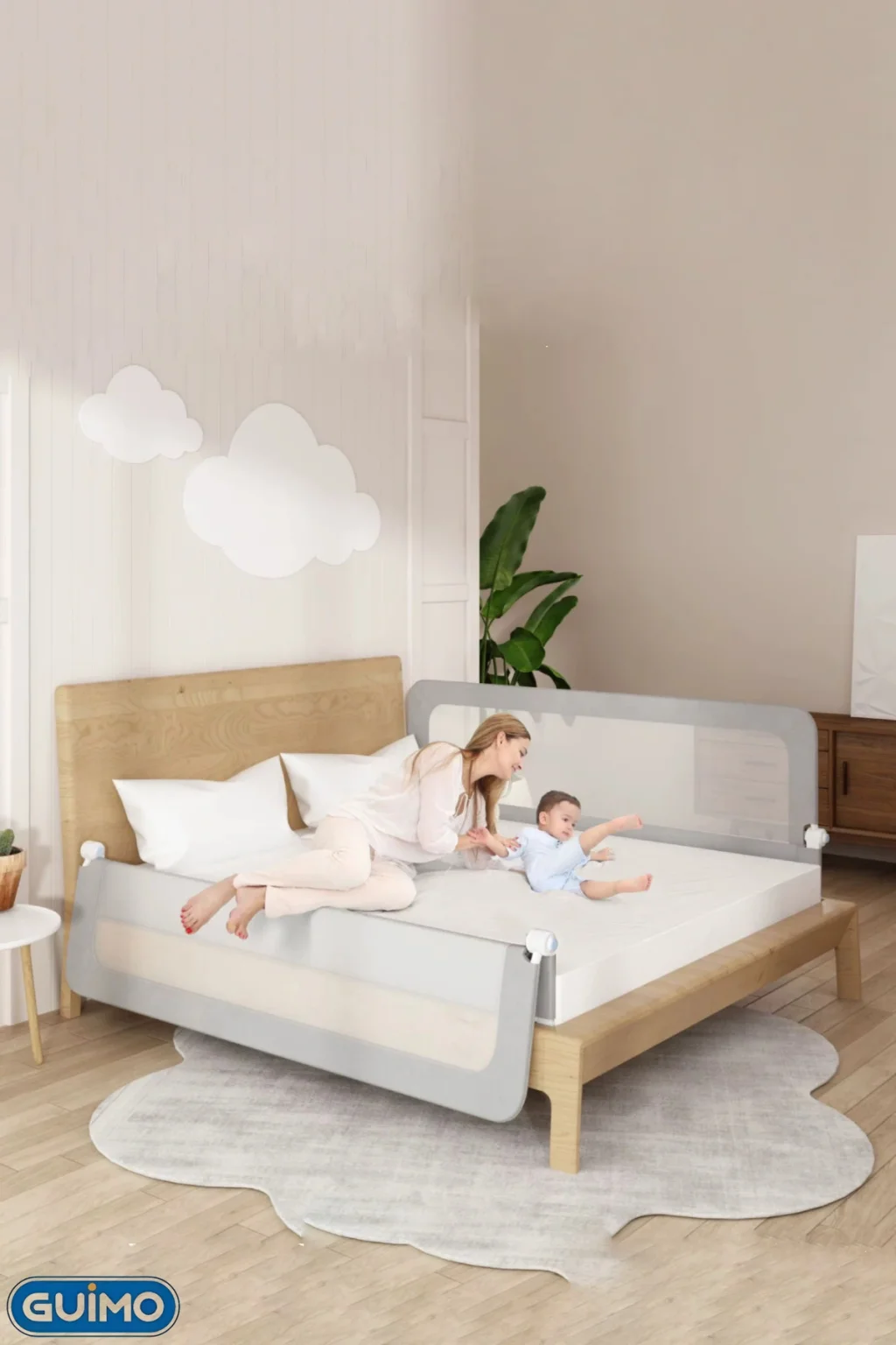Guimo Bebek Güvenlik Yatak Bariyeri 150CM GUİMO Bebek Güvenlik Yatak Bariyeri , kullanım kolaylığı ve rahatlığı sağlar! Yatak bariyeri çocuğunuzun yataktan düşme tehlikesini ortadan kaldırır.; Yataktan inmeyi kolaylaştırmak ve kolay nevresim değiştirebilmeyi sağlamak için kolaylıkla katlanabilir.; Ürün hem bazalı, hem de mobilyalı yataklarda kullanılabilir.; Tek harekette 180 derece katlanır ve ihtiyaç halinde yeniden kullanılır.; Dayanıklı metal aksam Leke tutmayan renkli kumaş Esnek koruma sağlayan soft file Tek harekette katlanma sağlayan buton Mobilyalı yataklarda kullanıma uygun tasarım Kolay montaj Güvenlik test raporu mevcuttur.; Teknik Özellikler: Genişlik: 150 cm Yükseklik: 48,5 cm Ağırlık: 2 kg Kapsama Alanı Ev Koli İçi Adedi 1 Kullanım Alanı Bebek - Çocuk Yatakları