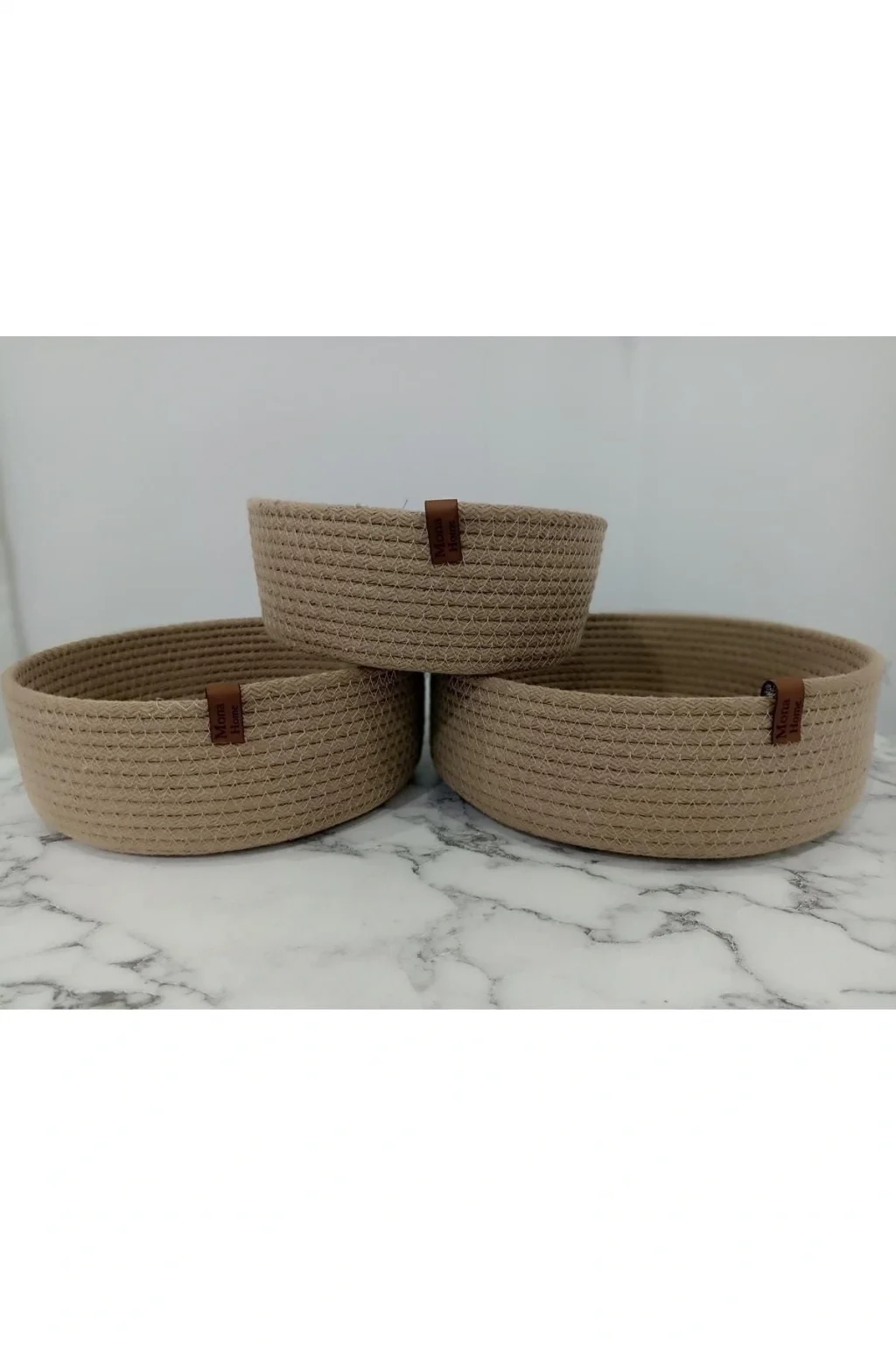 3'lü Hasır Sepet takımı ölçülerimiz.; 20x7 cm - 18x7 cm - 16x7 cm olarak 3 adet hasır sepet; Ürünler Doğal Hasır ip ile hazırlanmıştır.; Takımımız 3 adet sepet olarak gönderilecektir.; Ürünlerimiz el emeği olup tamamı makine dikişli olarak hazırlanmış, silikon ve benzeri malzemeler kullanılmamıştır.; Ürünlerimiz kolay temizlenebilir, silinebilir özelliktedir.; Üretim sonrası dikkatli kalite kontrolü sağlanarak her ürün detaylı bir şekilde incelenir ve siz değerli müşterilerimize gönderilir.; Mağazamızda satışa sunulan tüm ürünlerimizin tasarımı ve yapımı tamamen kendi el üretimimizdir.; İthal ve kaliteli 6 mm kalınlığında doğal jüt hasır ip ve kaliteli işçiliği ile ürünlerimizi uzun süre gönül rahatlığı ile kullanabilirsiniz.; İyi alışverişler dileriz .;