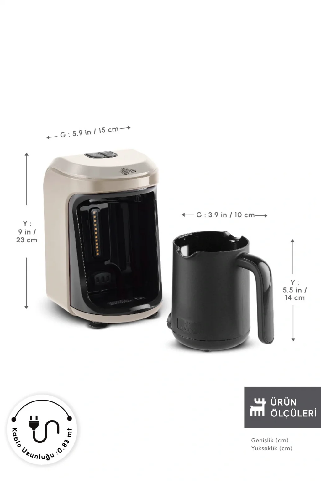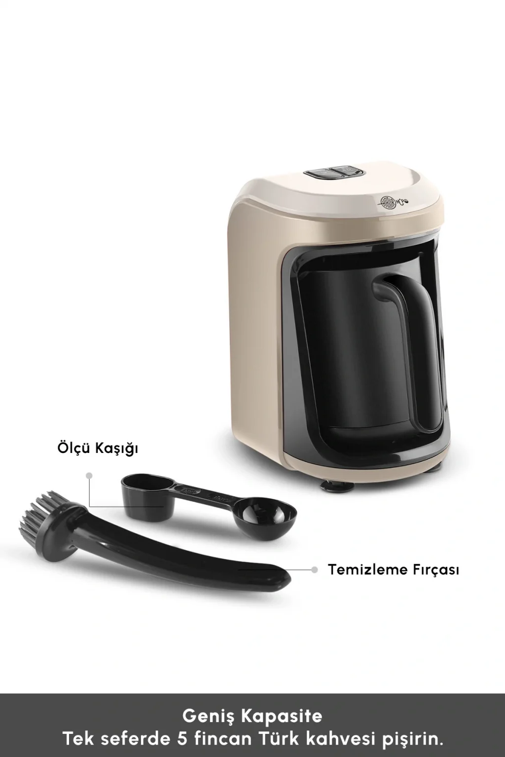 300 ml hacimli Karaca otomatik Türk kahve makinesi seçeneğini kullanarak geleneksel Türk kahvesi lezzetini kolayca evinizde elde edebilirsiniz.; Közde Türk kahvesi de hazırlayabilir, közde ağır ağır pişen bol köpüklü Türk kahvesinin tadına varabilirsiniz.; ; Tekli Türk kahve makinesi modelleri arasında yer alan Karaca Hatır Hüps modeli tek seferde 5 fincana kadar lezzetli kahveler hazırlayabilir.; Gelişmiş pişirme motoru sayesinde kahvelerin doğru aromada, bol köpüklü ve telvesi yerinde olmalarını sağlar.; ; Otomatik ısı ayarı yaparak kahveleri yakmadan pişiren Karaca Hatır Hüps sütlü Türk kahve makinesi bej rengi mutfak tezgahlarına şıklık getirir.; ; Hatır Hüps Düet 60 ml kapasitesindeki 5 fincanı kısa sürede lezzetli ve yoğun Türk kahvesi ile doldurabilir.; ; 535 Watt gücünde çalışan 5 fincan kapasiteli Türk kahve makinesi kahve ölçü kaşığı sayesinde yapmak istediğiniz fincan sayısına göre doğru oranda kahve eklemenize olanak tanır.; ; Hüps Düet pişirme sonrasında otomatik olarak kapanır ve kahvelerin aşırı pişmesini ya da yanmasını önler.; ; Taşma önleyici sistemli bu kahve makinesi modeli sayesinde mutfak tezgahları kirlenmezken Türk kahveleri de doğru köpük ve telve oranına sahip olur.; ; Lezzetli kahveleri ile her damak zevkine hitap etmeyi başaran Karaca Hatır Hüps, teknolojik sensörleri sayesinde mutfakların güvenliğini korur.;