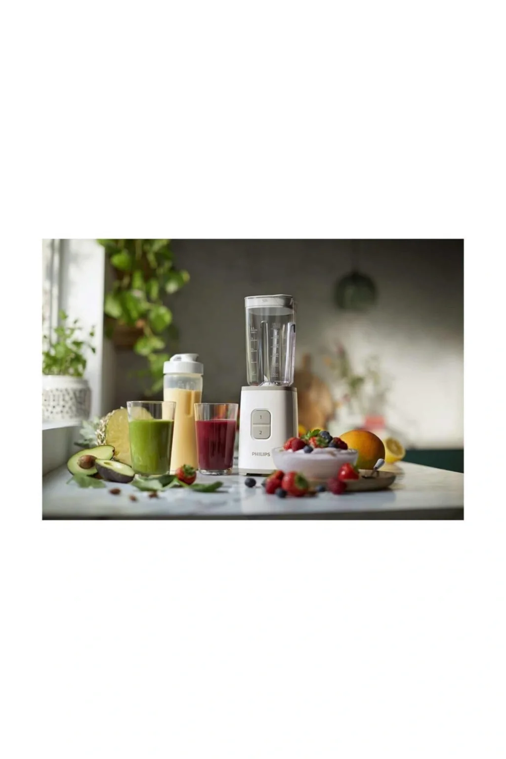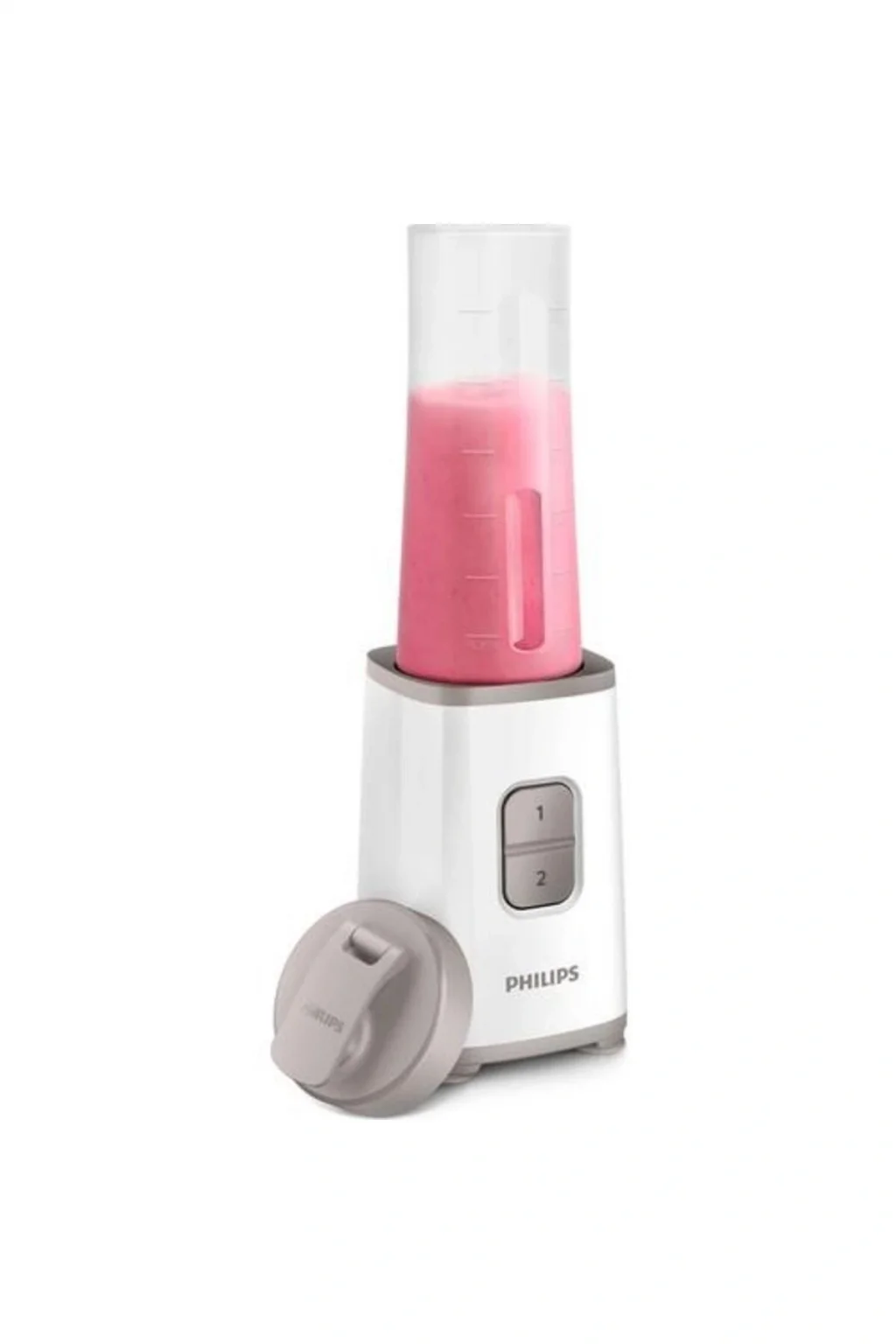 Philips smoothie blender, 350 W motor gücü ile 30 saniye içinde malzemeleri pürüzsüz haline getirir.; 240 volt gerilim gücüyle çalışır.; Taşınabilir smoothie blender, en yumuşak malzemeden en sert malzemeye kadar doğramasına yardımcı olur.; Philips HR2602/00 Daily Collection smoothie mini blender, kompakt tasarımı ile istenilen her yerde saklanır.; Philips Hr2602/00 paslanmaz çelikten oluşur.; Bu nedenle makine ve suya tutularak yıkanır.; Kişisel smoothie blender, iki hız ayarı düğmesi ile belirli ayarlarda karışım yapabilirsiniz.; Mini smoothie blender, küçük boyutlu olduğundan dolayı yanınızda taşımanız için çanta ve benzeri alanlarda muhafaza edilir.; Philips HR2602/00 Daily Collection mini blender, kaymaz ayak ile güvenli doğrama sunar.;