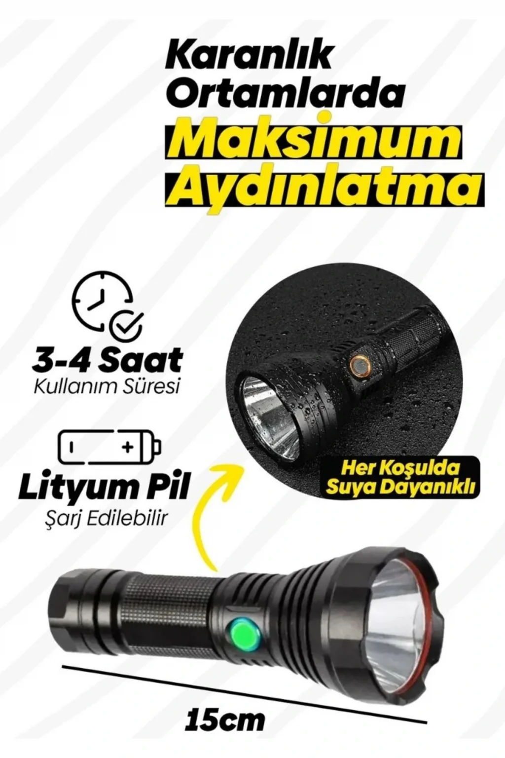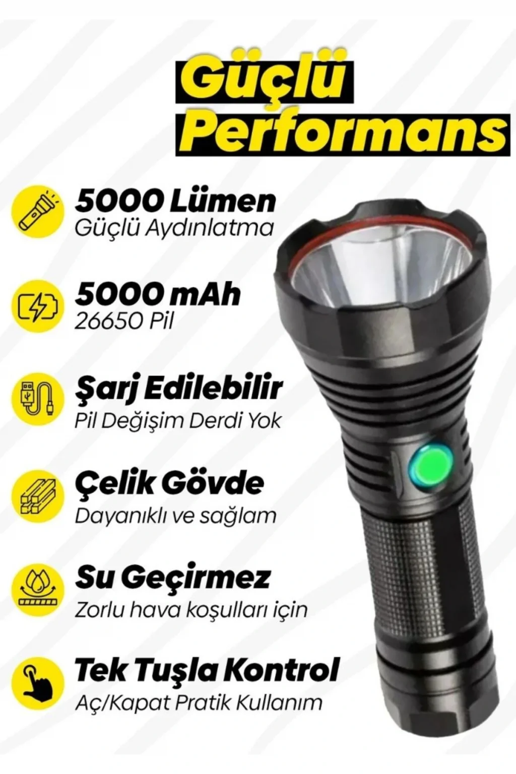 Genel Ürün Hs-044 Çelik 5000 Lümen 26650 Pil 5000 Mah Uzun Menzilli Şarjlı Kamp Için Süper Güçlü El Feneri