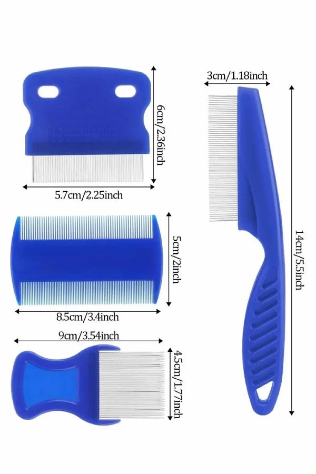 4'lü Bit Pire Tarağı Set Kedi Köpek Evcil Hayvan Tüy Toplayıcı Mavi