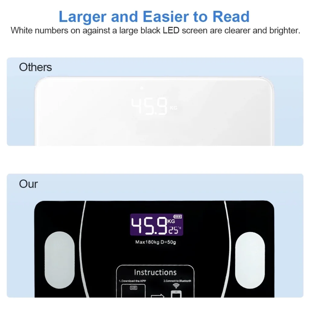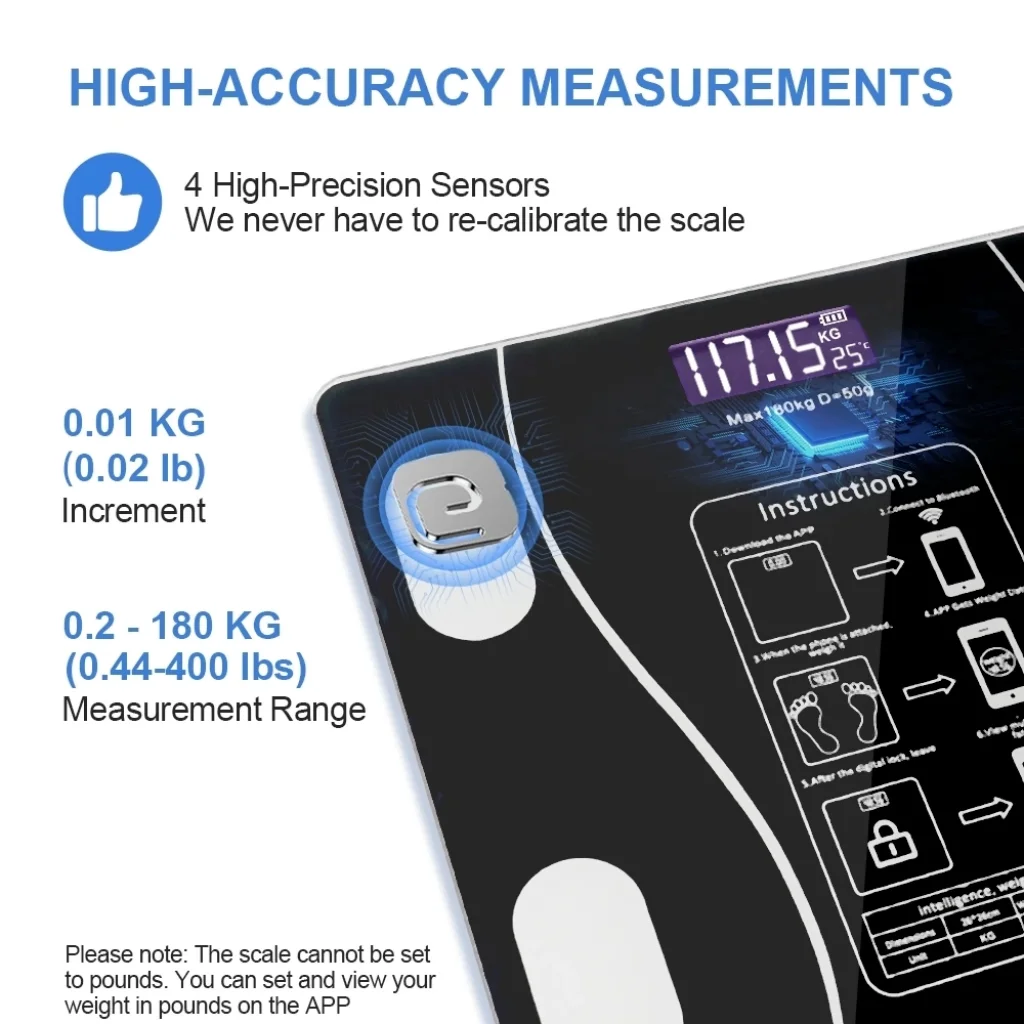 -Yeni Vücut Yağ Ölçeği Akıllı Kablosuz Dijital Banyo Ağırlık Ölçeği, vücut kompozisyonunu detaylı bir şekilde analiz eden modern bir cihazdır. Bu cihaz, günlük olarak ağırlığınızı ölçmenin ötesine geçerek vücut sağlığınızı kapsamlı bir şekilde değerlendirmenizi sağlar. İşte bu ölçeğin sunduğu bazı temel özellikler: