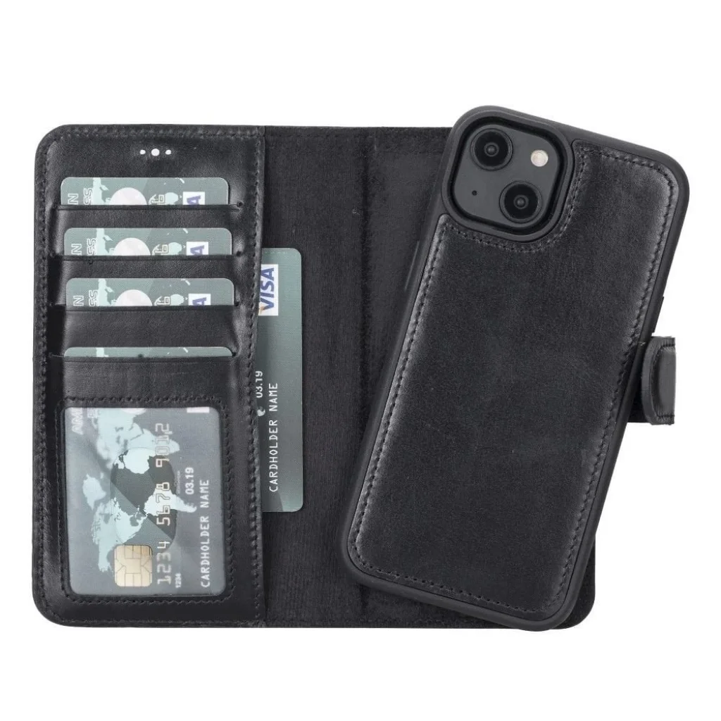 Apple iPhone 14 Uyumlu Deri Cüzdanlı Kılıf MWWN RST1 Siyah