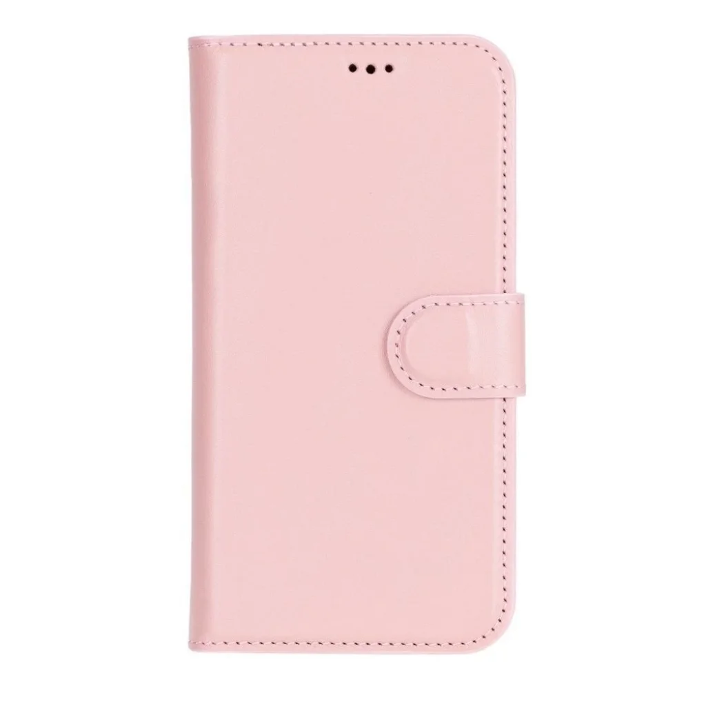 Apple iPhone 16 Plus uyumlu, Hakiki Deri, El Yapımı, Cüzdanlı Kılıf, Toz Pembe