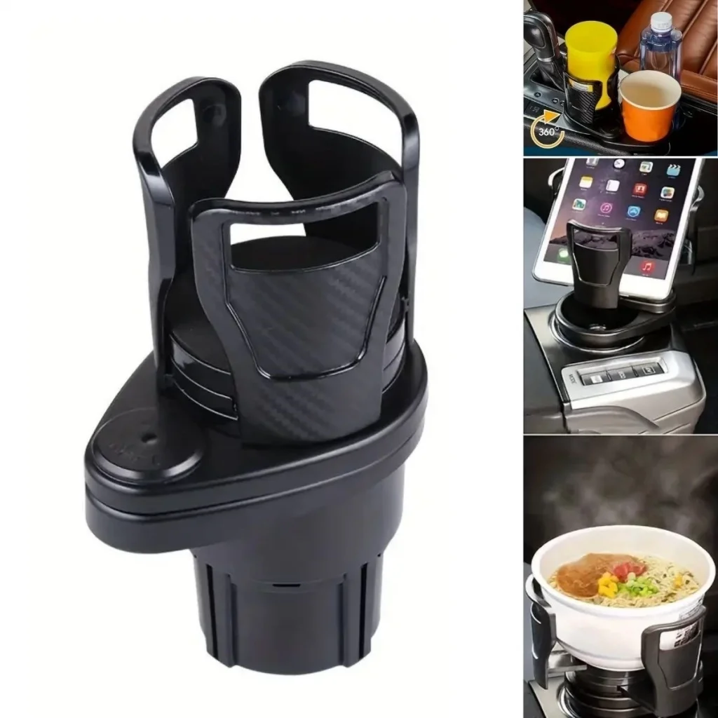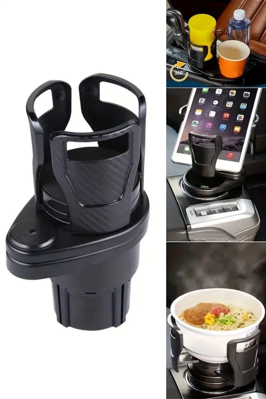 Araç İçi 360 Derece Dönen 2'li Bardaklıklı Açılarak Ayarlanabilir Bardak Tutucu Aparat