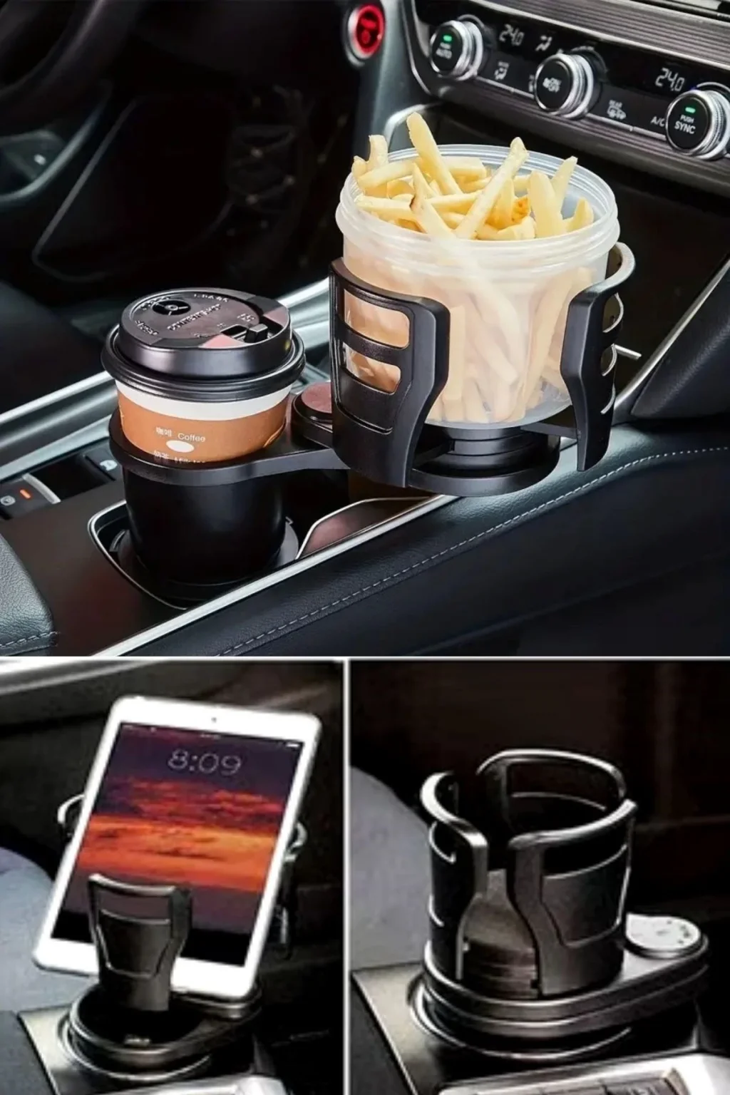 Araç İçi 360 Derece Dönen 2'li Bardaklıklı Ayarlanabilir Bardak Tutucu Aparat, araç içinde içeceklerinizi pratik ve güvenli bir şekilde saklamak için mükemmel bir çözümdür. Özel döner mekanizması ve ayarlanabilir yapısı sayesinde araç içinde kullanım kolaylığı sunar. İçeceklerin yanı sıra telefon, anahtar, güneş gözlüğü gibi küçük eşyalarınızı da düzenli bir şekilde saklamanıza yardımcı olur.
