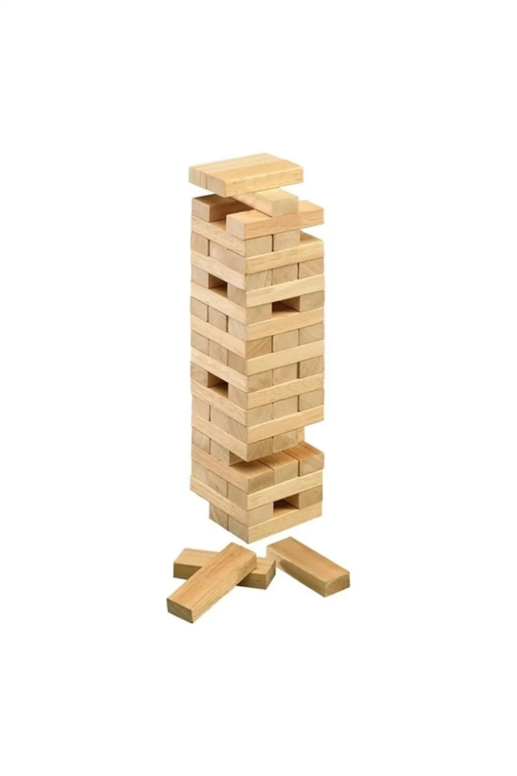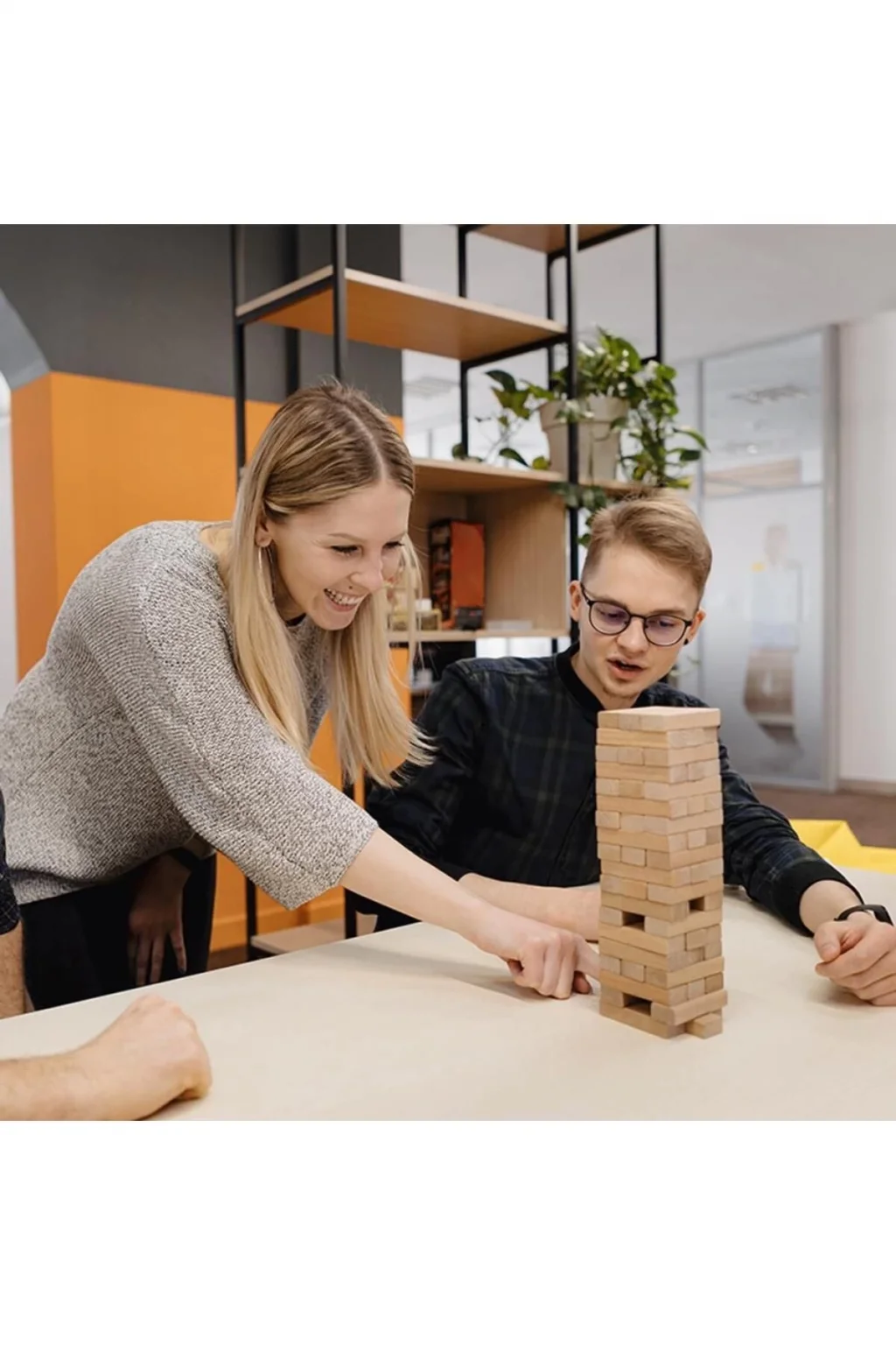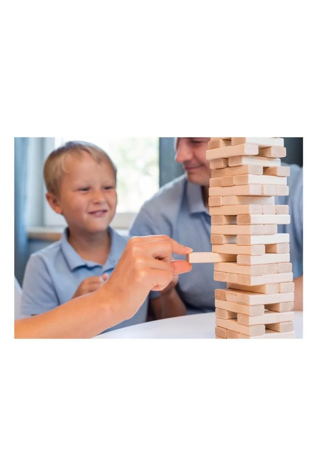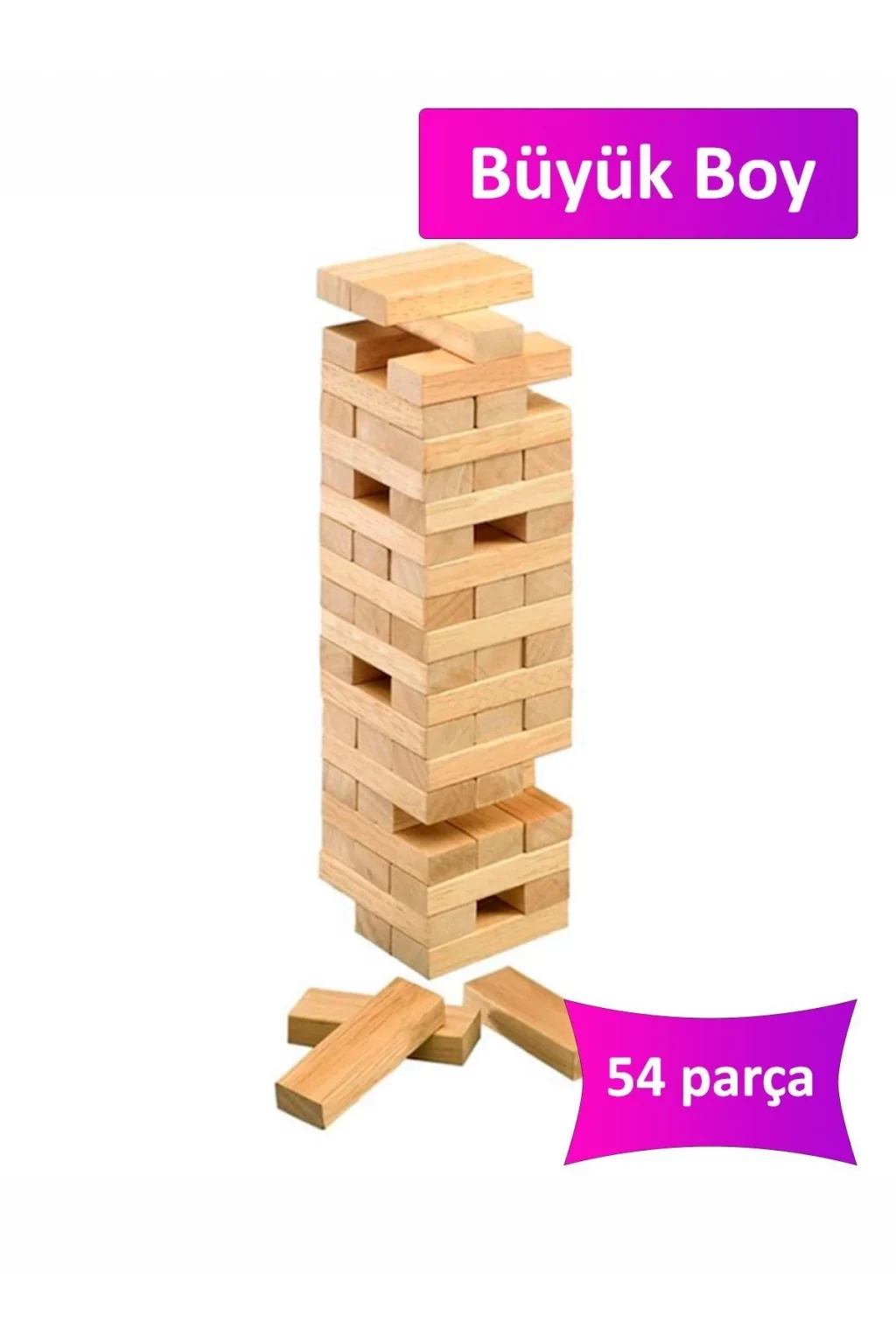 Büyük Boy Doğal Ahşap Denge Oyunu Kule Oyunu 54 Parça Ahşap Yapı Blokları: Ailecek Eğlencenin ve Zeka Gelişiminin Yeni Adresi!
