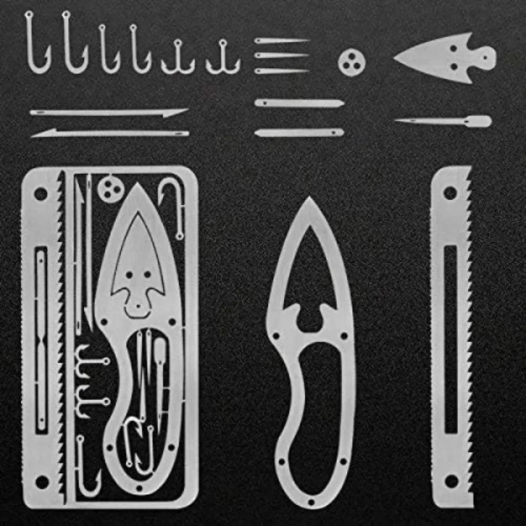 ÇOK FONKSİYONLU HAYATTA KALMA BALIKÇI KİTİÜrün ÖzellikleriKredi kartı boyutundaki bu çok fonksiyonlu hayatta kalma aracı, kamp, doğa yürüyüşü ve acil durumlar için mükemmel bir çözüm sunar. Kompakt ve taşınabilir yapısıyla cüzdanda kolayca taşınabilir ve hafifliği sayesinde yer kaplamaz. Paslanmaz çelikten üretilmiş olup dayanıklı ve uzun ömürlüdür. Araç, bıçak, balık tutma kancası, testereli kenar, vida ve anahtar yuvaları gibi birçok işlevi bir arada sunar. Açık hava etkinliklerinde, günlük tamir işlerinde veya acil durumlarda hayat kurtarıcı olabilir.Paket İçeriği1 Adet Kart Boyutunda Çok Fonksiyonlu Hayatta Kalma Balıkçı Kiti