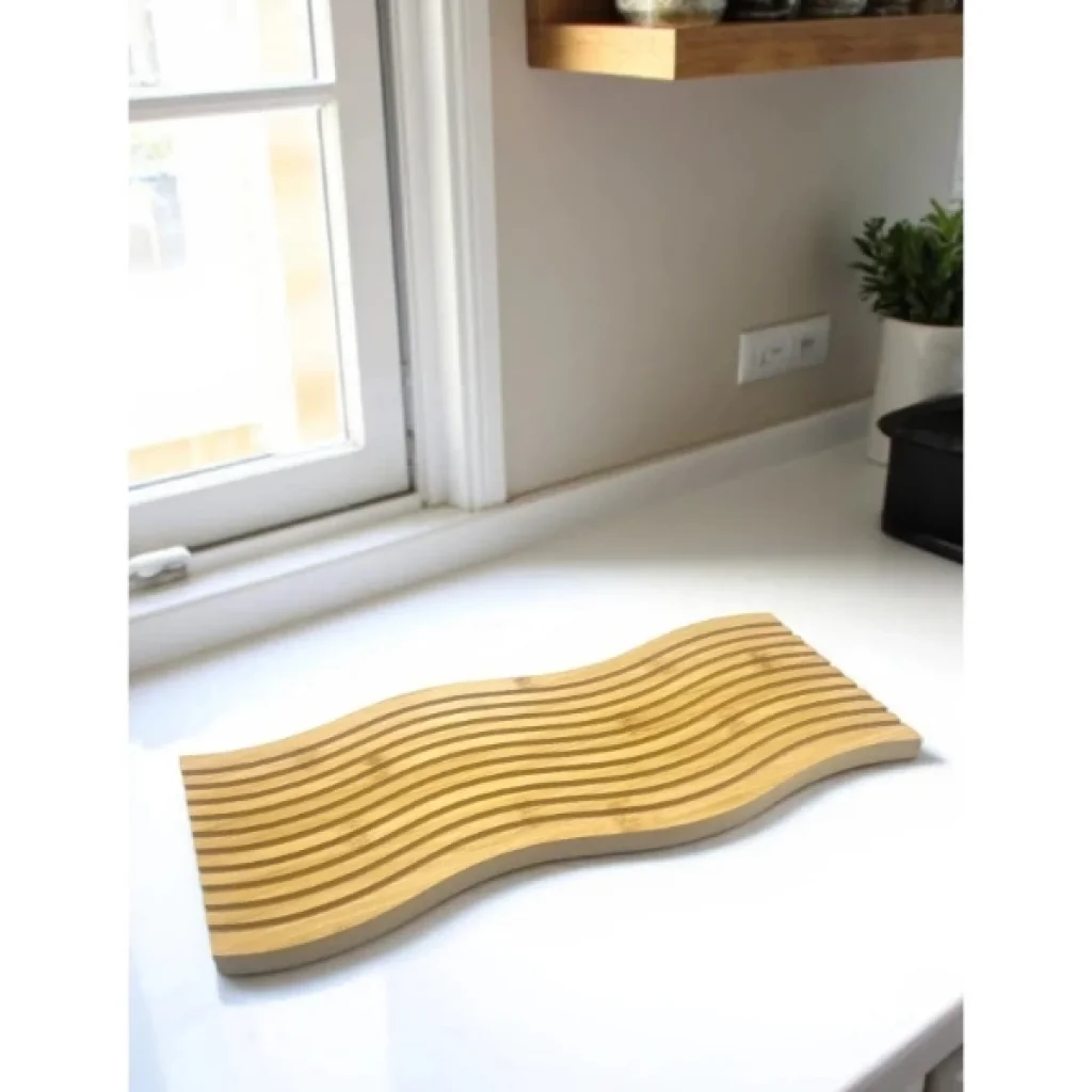 DALGALI ÇİFT TARAFLI TASARIMLI AHŞAP SUNUM TEPSİSİ Ürün ÖzellikleriDalgalı formda özel tasarımıyla öne çıkan bu çift taraflı ahşap sunum tepsisi, hem estetik hem de fonksiyonel kullanımlar için idealdir. 39x15 cm ölçülerindeki bu şık sunum tepsisi, bambu benzeri doğal ahşap malzemeden üretilmiştir. Bir yüzü düz, diğer yüzü oluklu tasarımıyla farklı sunum konseptlerine uyum sağlar. Kahvaltılık, atıştırmalık, peynir, kuruyemiş veya tatlı gibi yiyeceklerin sunumunda hem günlük kullanım hem de özel davetler için uygundur. Ahşap yapısı doğal görünüme katkı sağlarken, kolay temizlenebilir yüzeyi ile pratik kullanım sunar.Paket İçeriği1 Adet Dalgalı Çift Taraflı Ahşap Sunum Tepsisi