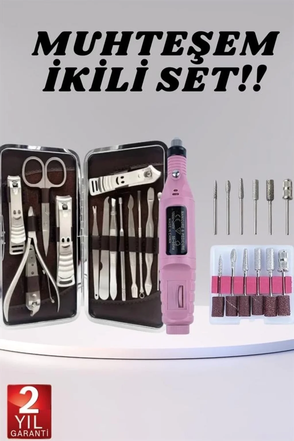 Elektrikli Manikür Pedikür Seti İkili Set 12 Parça Tırnak Bakımı Törpü Protez Çıkarma