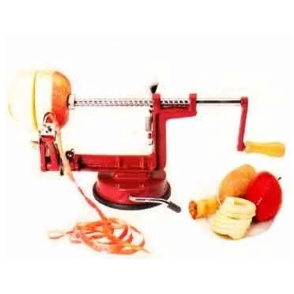 ELMA DİLİMLEME ALETİ Ürün AçıklamasıElma yemek ve soymakhiç bu kadar zevkli olmamıştı! Özellikle çocuklu ailelerin kaçırmaması gerekenbir ürün. Armut, Ayva, Patates ve Turp soymak için de güvenlekullanabilirsiniz. Paslanmaz çelik bıçağı ile elmayı mükemmel incelikte soyar.Kullanımı kolaydır, meyve 3′lü çiviye saplanır, çevirme kolunu çevirince aletçalışır.Meyve yemeyen çocuklarınıza elma armut yemeyi sevdiren birüründür.Güçlü vakum tabanı ile her yüzeye sabitlenir, kullanım sırasındakaymaz.Tüm bıçakları takıp çıkarılabilirözelliktedir. Ürün dökme demirden yapılmış olup bıçakları paslanmaz çeliktenimal edilmiştir. Soyma Bıçağı farklı kalınlıkta soymak için ayarlanabilir,oynar başlığı ile her boyda meyveyi rahatça soyar. Bıçak başlıklarını ayarlamak suretiyle dilerseniz sadece soyma, sadecedilimleme ve çekirdek çıkarma yapabilirsiniz. Temizlemesi ve yıkaması kolaydır.Okul kantinlerinde, restoranlarda,otellerde, mutfağınızda, piknikte kısacası her yerde rahatça kullanabilirsiniz.Elmaların kabuğunu kolay ve hızlıca soyar, elmanın çekirdeğini çıkartır,Meyveleri eşit spiral halkalar halinde dilimler, dekoratif bir görüntüoluşturur.Dilimler birbirinden ayrılmadan tek parça halinde çıkar.Kabuklarıince ve düzgün bir şekilde soyar.Vakumlu alt kısmı sayesinde zemine kolaycasabitlenir ve kolay kullanım imkanı sunar.Ayrıca, elma turtası, elma mezesi,meyve salatası, kuru meyveler, patates, turp ve daha bir çok meyveyi soymakiçin idealdir. Soyulacak olan meyvelerin şekline göre otomatik olarakayarlanır. Altındaki vantuz ile bulunduğu ortama kolayca tutunur. Ürün Boyutları Uzunluk:20 cmYükseklik:14 cm Genişlik: 11 cm Paket İçeriği 1 Adet elma dilimleme ve soyma makinesi