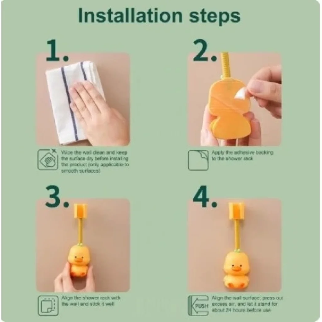 Sevimli Hayvan Figürlü Banyo Duş Başlığı TutucuDuvara monte edilebilen ve farklı hayvan figürlerinden oluşan sevimli duş başlığı ve banyo aksesuarları askıları görülüyor. Bu tür ürünler, banyo düzenini kolaylaştırmak ve aynı zamanda banyoya eğlenceli bir hava katmak için idealdir. Askılar, vakumlu veya yapışkanlı montaj yöntemi ile kolayca monte edilebilir ve farklı banyo gereçlerini asmak için kullanılabilir.Ürün Açıklaması:Bu sevimli hayvan figürlü banyo askıları, duş başlığı, banyo süngeri, lif ve diğer banyo aksesuarlarını düzenli tutmak için mükemmel bir çözümdür. Kolay montaj için yapışkanlı veya vakumlu olarak tasarlanmıştır; duvarınıza zarar vermeden istediğiniz yere monte edebilirsiniz. Dayanıklı malzemeden üretilmiş olup, suya ve neme karşı dayanıklıdır. Şirin ördek, penguen gibi figürleri ile banyonuza eğlence katarken, aynı zamanda işlevsellik sunar. Her yaş için uygundur ve özellikle çocukların banyo zamanlarını daha keyifli hale getirir.PAKET İÇERİĞİ:1 ADET Hayvan Figürlü Duş Başlığı tutucu