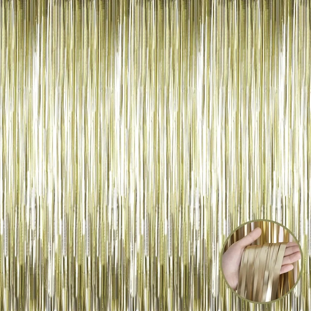 Altın renkli metalik tinsel perde ile mekanınızı parlatın ve unutulmaz anılar biriktirin!