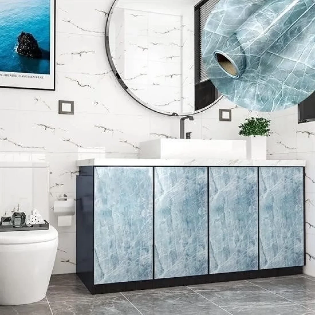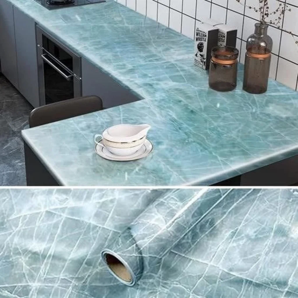 BX Mermer Desenli Masa Tezgah Mutfak Duvar Kağıdı Su Geçirmez Yapışkanlı Folyo Sticker Mavi 5x0,6m