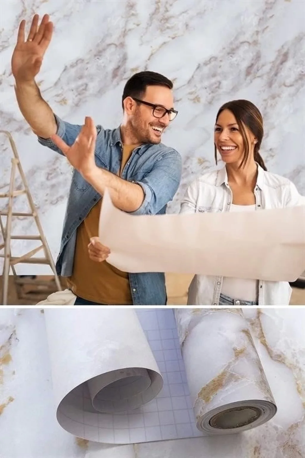 Mermer desenli yapışkanlı folyo ürünüyle birlikte evinizde şık ve modern bir görünüm sağlayabilirsiniz
