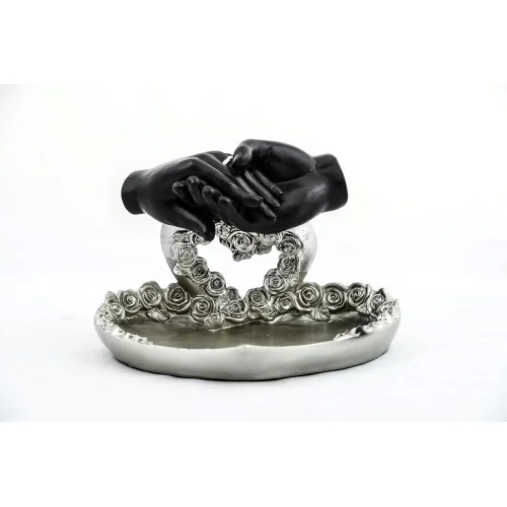 ÖZEL TASARIM KALPLİ POLYESTER SUNUM TEPSİSİÜrün ÖzellikleriModern bir tasarıma sahip olan bu özel tasarım kalpli sunum tepsisi, şık ve estetik detaylarla tamamlanmıştır. 23x16 cm boyutunda, siyah ellerin ve gümüş renkli gül motiflerinin birleşimiyle tasarlanmış olan bu obje, hem görsel açıdan etkileyici hem de dekoratif açıdan dikkat çekicidir. Polyester malzemeden üretilen bu sunum tepsisi, zarif yapısı ile sofralarınızı ve iç mekan dekorasyonunuzu zenginleştirir. Hem şık bir hediye hem de eşsiz bir koleksiyon parçası olarak kullanılabilir.Paket İçeriği1 Adet Özel Tasarım Kalpli Polyester Sunum Tepsisi