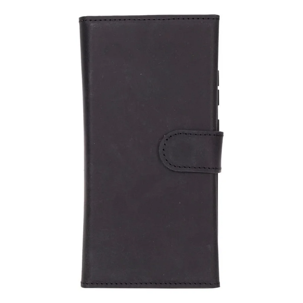 Samsung Galaxy S25 Ultra uyumlu, Hakiki Deri, El Yapımı, Cüzdanlı Kılıf, Mat Siyah