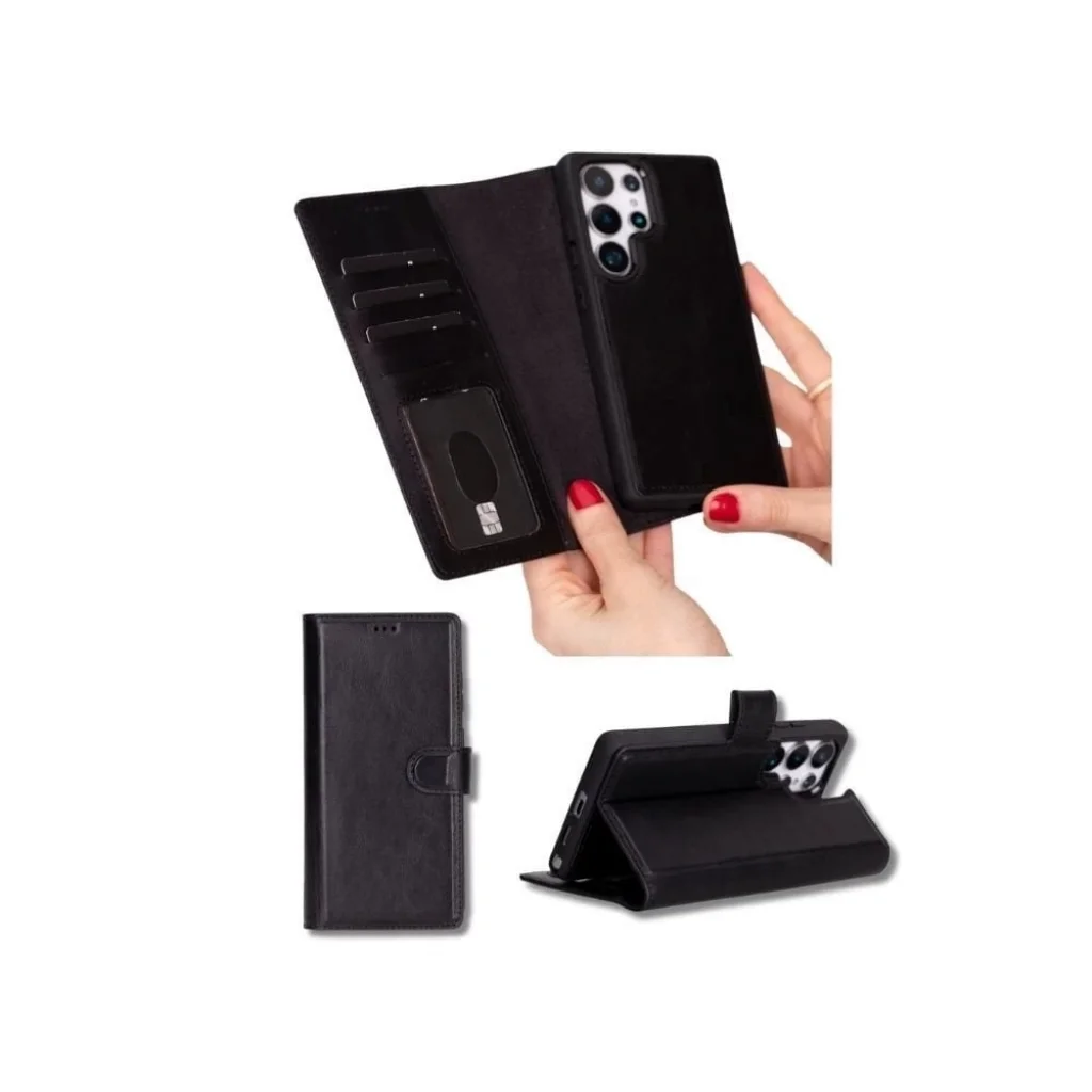 Samsung Galaxy S25 Ultra uyumlu, Hakiki Deri, El Yapımı, Cüzdanlı Kılıf, Parlak Siyah
