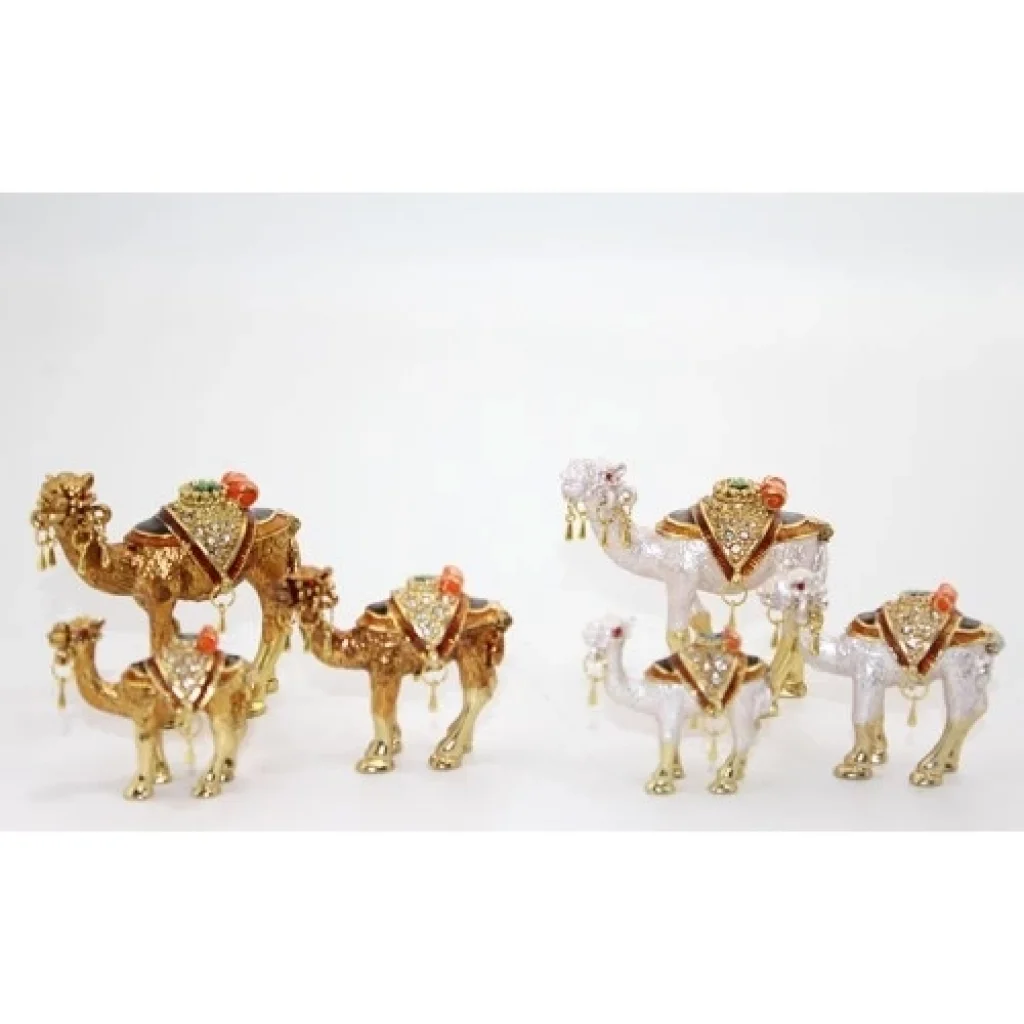 SWAROVSKI TAŞLI 3'LÜ DEVE FİGÜRÜ MODEL 3Ürün ÖzellikleriSwarovski Taşlı 3'lü Deve Figürü Model 3, zarif ve estetik tasarımı ile dikkat çeker. Swarovski taşları ile süslenmiş bu figür seti, ev dekorasyonunuza şıklık katar. Set, 7x6x5 cm boyutlarında üç adet deve figüründen oluşmaktadır. Her bir figür ince işçilikle tasarlanmış ve dayanıklı malzeme kullanılarak üretilmiştir. Hem modern hem de klasik dekorasyon tarzlarına uyum sağlar.Paket İçeriği3 Adet Swarovski Taşlı Deve Figürü