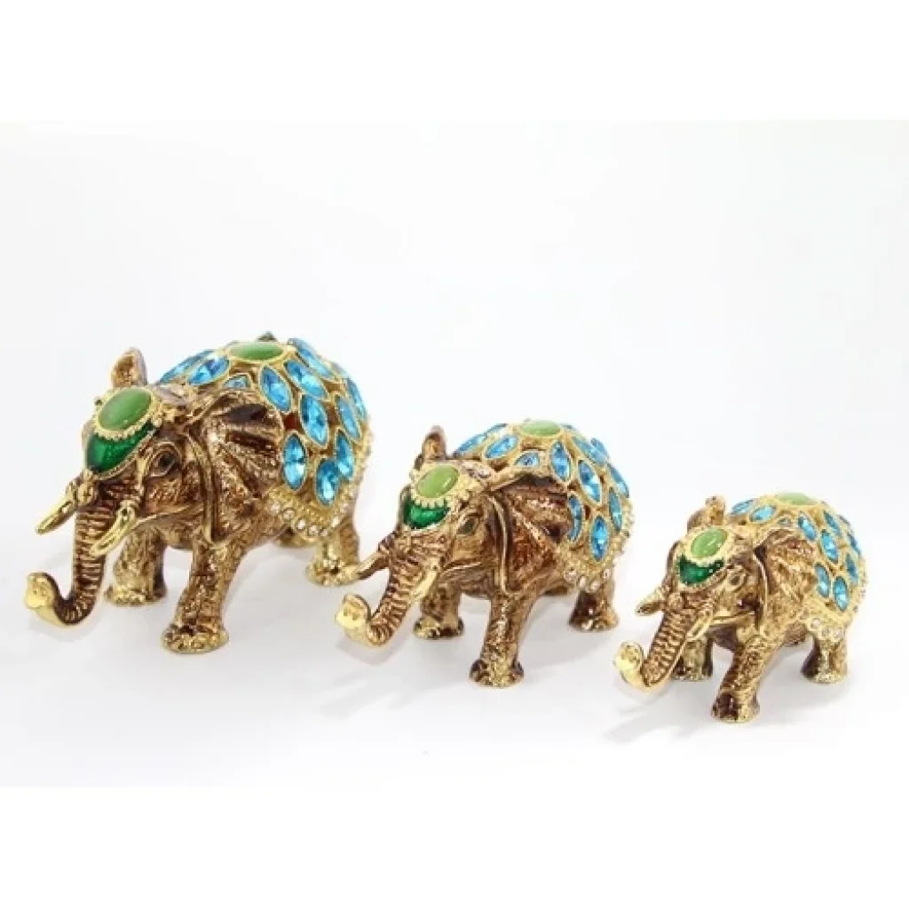 SWAROVSKİ TAŞLI 3'LÜ FİL FİGÜRÜ MODEL 2Ürün ÖzellikleriDekoratif Swarovski Taşlı 3’lü Fil Figürü, estetik ve zarif tasarımıyla ev ve ofis dekorasyonuna şıklık katıyor. Altın kaplama detayları ve Swarovski taş süslemeleri ile göz kamaştıran bu üçlü set, şans ve bereketin sembolü olarak bilinen filler ile anlamlı bir hediye alternatifi sunar. 9x8x7 cm boyutlarındaki bu özel tasarım, üç farklı boyutta ve uyumlu bir şekilde dizilmiş fil figürlerinden oluşmaktadır.Paket İçeriği1 Adet Swarovski Taşlı 3’lü Fil Figürü Seti Model 2