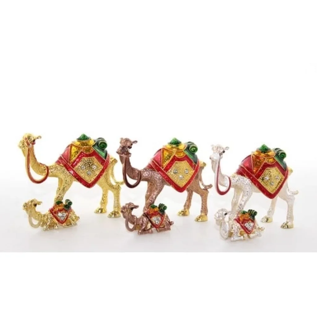 SWAROVSKİ YAVRULU DEVE MODEL 3Ürün ÖzellikleriSwarovski Yavrulu Deve Model 3, 7x9 cm boyutunda olup zarif ve otantik tasarımıyla dekoratif aksesuar olarak öne çıkar. Swarovski taşlarla süslenmiş detayları, metal gövde ve emaye kaplama ile tamamlanarak estetik bir görünüm sunar. Yavrulu deve figürü, koleksiyonluk bir obje olarak vitrin, masa ve raf dekorasyonlarında şık bir dokunuş sağlar. Hem hediyelik hem de otantik koleksiyon parçaları sevenler için ideal bir seçenektir.Paket İçeriği1 Adet Swarovski Yavrulu Deve