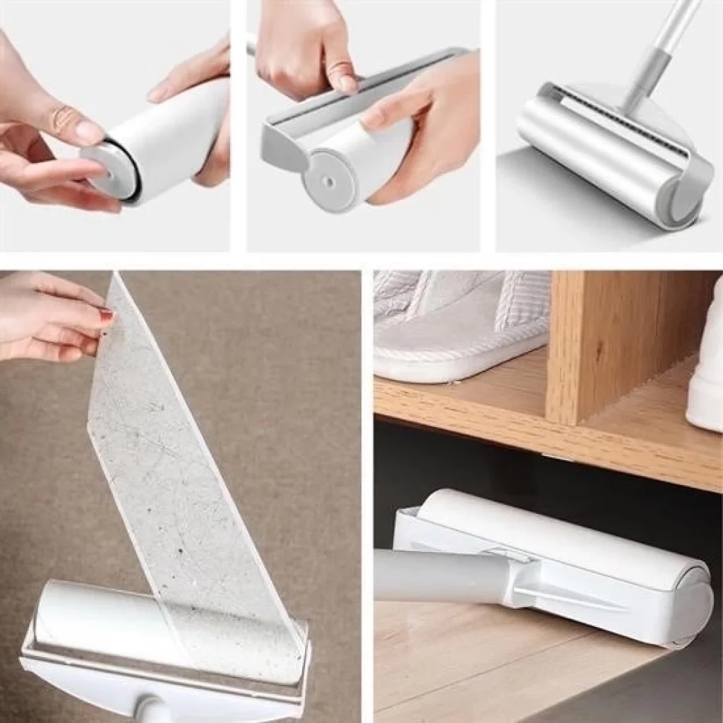 Teleskopik Saplı 24 Cm Yapışkanlı Tüy Rulosu Uzayabilen Hav Tüy Toz Toplayıcı Rulo 2 Yedekli