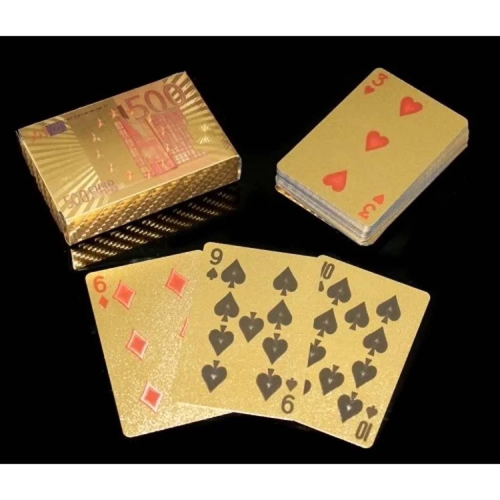 VARAKLI EURO OYUN KARTIÜrün ÖzellikleriŞık ve lüks tasarımıyla dikkat çeken varaklı Euro oyun kartı, dayanıklı malzemeden üretilmiş olup uzun süreli kullanım sağlar. Altın yaldızlı yüzeyi, kartlara zarif ve premium bir görünüm kazandırırken, suya ve yıpranmaya karşı dayanıklı yapısı sayesinde klasik kart destelerine göre daha uzun ömürlüdür. Özel 500 Euro banknot tasarımıyla koleksiyoncular ve kart oyunu severler için ideal bir tercihtir.Paket İçeriği1 Adet Varaklı Euro Oyun Kartı Deste