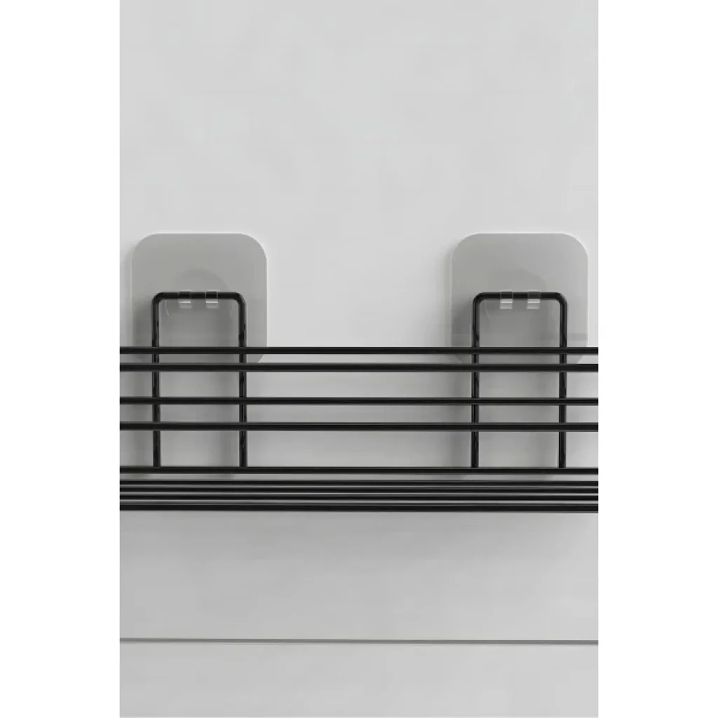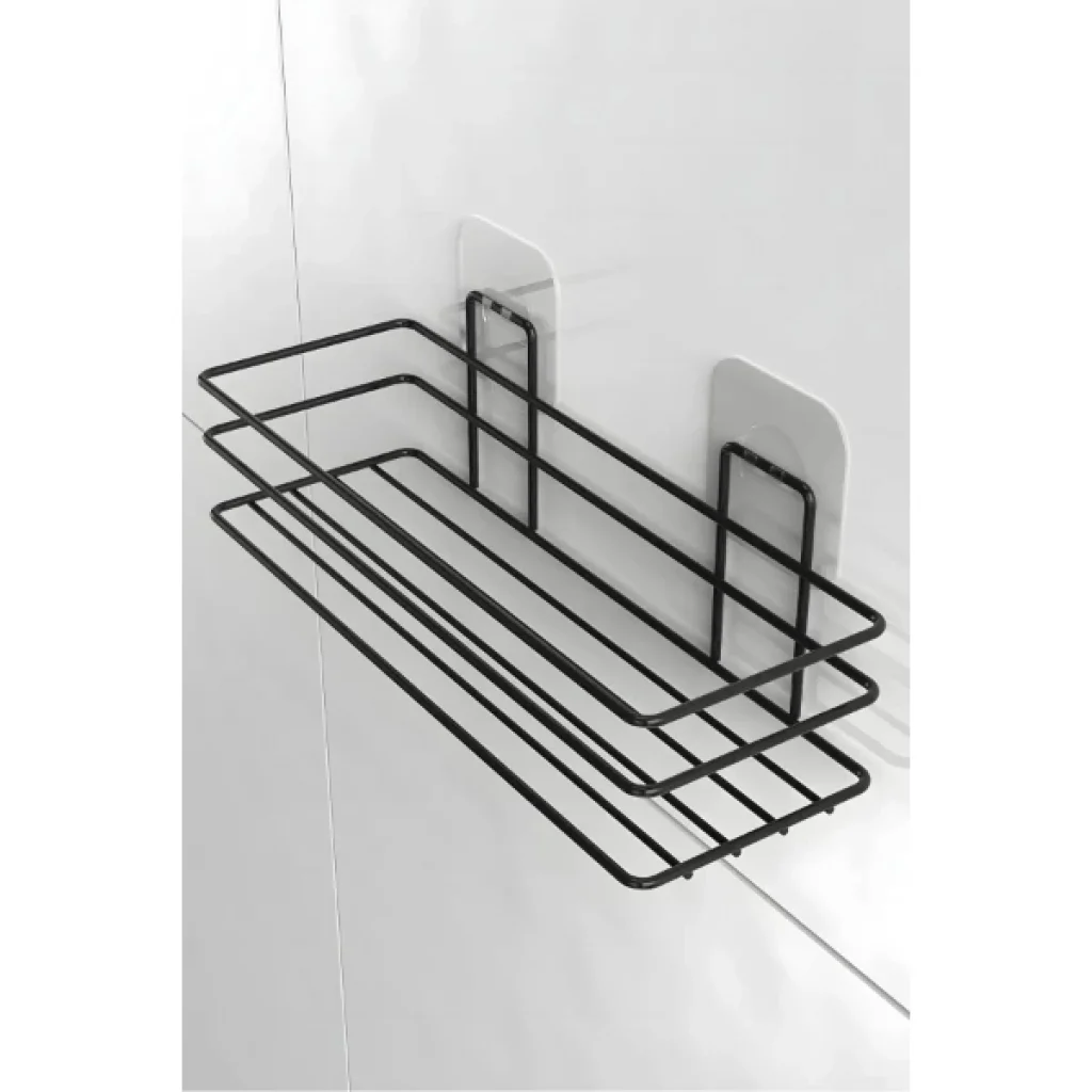 YAPIŞKANLI DUŞ VE BANYO RAFIÜrün ÖzellikleriYapışkanlı duş ve banyo rafı, banyoda delme işlemi yapmadan pratik bir şekilde düzen sağlamanıza yardımcı olur. Siyah kaplamalı paslanmaz metal malzemeden üretilmiş olup paslanmaya karşı dayanıklıdır ve uzun ömürlü kullanım sunar. Üç telli koruma kenarlığı sayesinde ürünleriniz düşmeden güvenle yerleştirilebilir. Açık taban tasarımı sayesinde su birikimini engeller ve hijyenik bir kullanım sunar. Şeffaf yapışkan panel ile banyonuza, duş alanınıza veya lavabo yanına kolayca monte edilir. Ortalama 3-5 kg taşıma kapasitesi ile şampuan, sabun, duş jeli ve benzeri ürünleri kolay erişilebilir biçimde organize edebilirsiniz. Modern görünümüyle banyo estetiğini bozmadan şık bir kullanım sunar. Aynı zamanda mutfakta veya diğer ıslak alanlarda da rahatlıkla kullanılabilir.Paket İçeriği1 Adet Yapışkanlı Duş ve Banyo Rafı