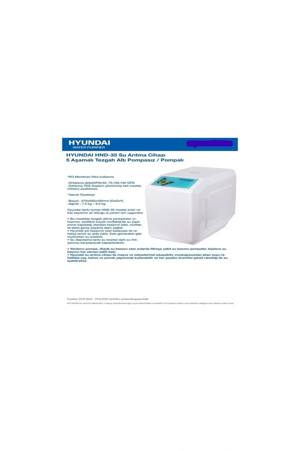 Genel Ürün Hyundaı Su Arıtma Cihazı Hnd 35Hyundaiu2019Nın Tankı içinde Hnd 35