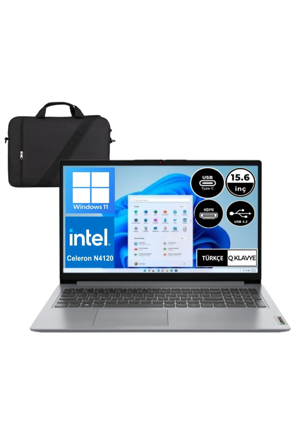 Lenovo Ideapad1 Celeron N4120 4gb Ram 128gb emmc 15.6" Windows 11 Taşınabilir Bilgisayar 82V7005MTX + ÇANTA HEDİYE