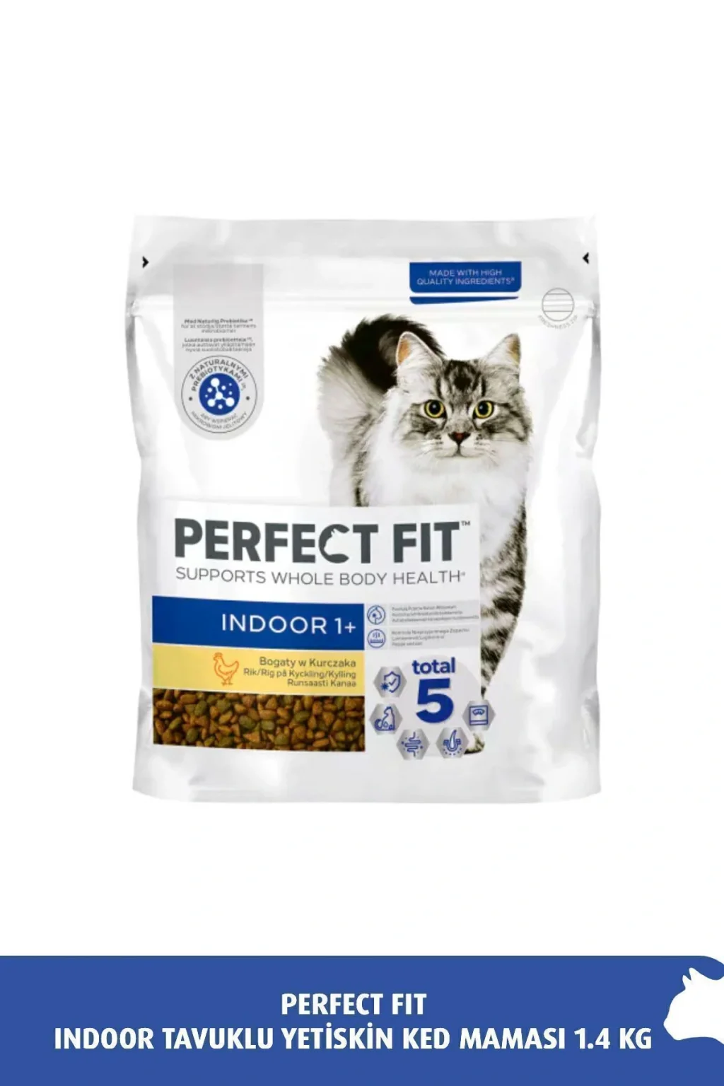 PERFECT FIT Indoor 1+ tavuk eti açısından zengindir.; Kedinizin tüm vücut sağlığını desteklemek, yaşına veya yaşam tarzına göre ek sağlık yararları sağlamak üzere geliştirilmiştir.; PERFECT FIT ' in toplam 5 formülü, sindirim, deri ve tüy, bağışıklık sistemi, kilo yönetimi ve idrar yolu dahil olmak üzere kedi yaşamının çeşitli yönlerini desteklemeyi amaçlar.; İçerik Et ve Hayvansal Ürünler Tavuk Eti %14 Buğday Mısır Sebze Protein Ekstrakları Bitkisel ve Hayvansal Yağlar Sebze Kaynaklı Ürünler Mayalar (Doğal Bira Mayası %2) Mineraller