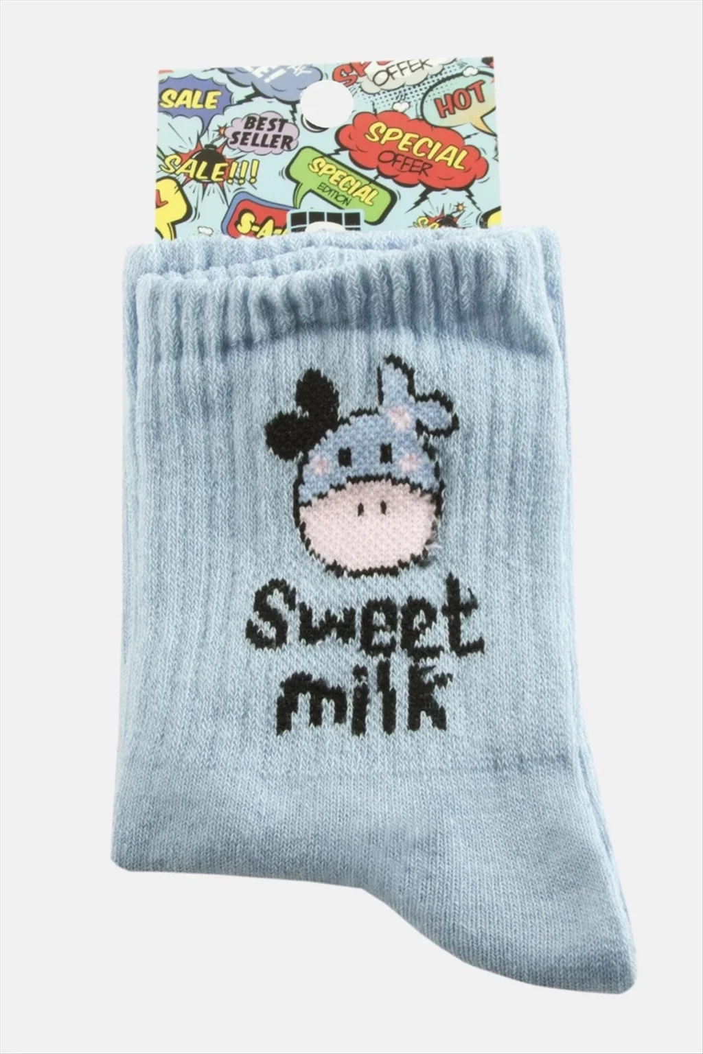 Çorap; Ürün malzemesi polyester ve üzeri desenlidir. Boyu 28 cm ve genişliği 8 cmdir. Ürün numarası 37-41 arasındadır.