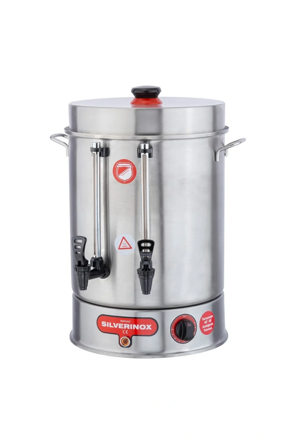 Işıkgaz Silver 60 Bardak Standart Çay Makinesi ( Çay Potu ) Ürün 304 Kalite 18/8 Paslanmaz Krom Çelikten ÜretilmektedirTermostat Kontrolü 30 / 110 °C Arasıdır24 Saat Sıcak Su Ve Çay Olanağı SunarMetal Sapları İle Taşıma Kolaylığı SağlarDem Haznesi Ve Süzgeci Paslanmaz Çeliktir.Üründe Pilot Lambası MevcutturÇay Lezzetinin Uzun Süre Bozulmamasını SağlarToplu Tüketim İçin Uygun Kullanım SağlarYuvarlatılmış Köşeler Kolay Temizleme İmkanı Ve Hijyen İmkanı SağlamıştırÜrünün Gövdesi Tamamen Paslanmaz Çeliktir Bu Sayede Uzun Kullanım Ömrü SunarProfesyonel Kullanımlar İçin Dizayn Edilmiş Yüksek Performanslı ÜründürDarbelere Karşı Dayanıklı Paslanmaz Çelik Dış YüzeyIsıya Dayanıklı Özel Paslanmaz Çelik Malzemeden Üretilmiş Boro Tip Rezistans Yoğun Kullanıma Göre Özel TasarlanmıştırPlastik Sabitleyici Ayaklar Sayesinde Zeminde Oynama YapmazKullanımı Kolay Ve Hijyenik ÜründürÖzel Tasarım Isıtıcılar Sayesinde Homojen Sıcaklığa Sahip Isıtıcılar Hızlı Şekilde Yüzey Sıcaklığını İstenilen Sıcaklık Seviyesine UlaştırmaktadırÜründe Sızdırmaz Basmalı Plastik Musluk KullanılmıştırSu Ve Çay Seviyesini Görebilmek İçin Metal Boru Sistemi MevcutturKurulum Gerektirmez Prize Tak-Çalıştır ÖzellikliIsı Ayar DüğmesiTermostat Sistemi Sayesinde İstenilen Sıcaklığa Geldiğinde Otomatik Kapanarak Enerji Tasarrufu SağlarGünün Her Saatinde Sıcak Suyunuz Hazır OlurÜretim Yeri: TürkiyeBu Ürün Çay Potu, Çay Semaveri Olarak Da BilinirÜrün Model Tasarımında Üretim Serisine Bağlı Olarak Küçük Değişiklikler Bulunabilir Daha Detaylı Bilgi İçin"Mağazaya Soru Sor" Kısmından Bizlere Ulaşabilirsiniz. Boy: 28 Cm En: 28 Cm Yükseklik: 43 Cm Ağırlık: 2,75 KgKapasite: 60 Bardak / 7 LitreGüç: 1100 WattEnerji: 220 Volt / 50 Hz