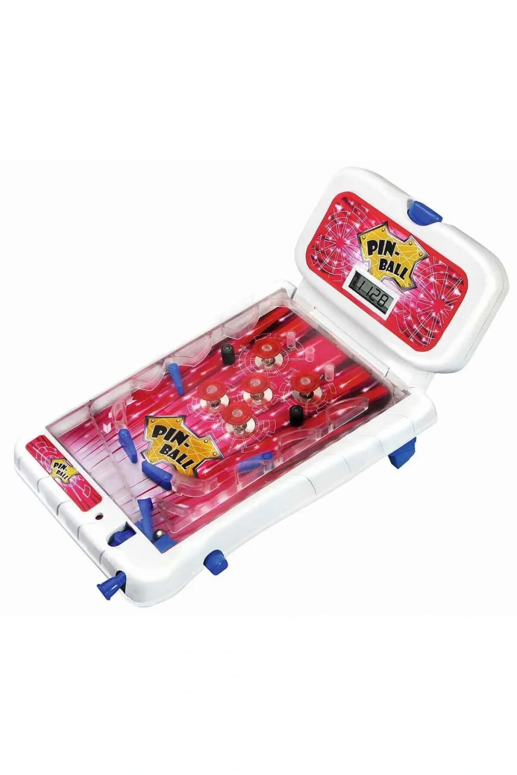 Işıklı ve Sesli Pinball Tilt Oyun Masa Seti; 90’lı yılların unutulmaz oyunu Pinball geri dönüyor!; Başlama noktasındaki mavi renkli kolu çek ve bırak! İçerideki topu oyun alanına fırlat ve çalan müzikle beraber eğlencenin tadını çıkar!; Pinball veya tilt, bir tür arcade oyunudur. Pinball makinesinin içindeki oyun alanında bir veya daha fazla çelik top oyuncu tarafından hareket ettirilerek puan kazanılmaya çalışılır.; Metal top ürünün orta bölmelerinde bulunan ışıklı ve yaylı bölüme çarptığında puan kazanılır. Oynayan kişi böylelikle topu içeride tutmaya çalışarak puan kazanmaya devam eder.; Ürünün içindeki hareketli kollar, ürünün sağ ve sol tarafında bulunan tuşlarla kontrol edilir. Biriken puanlar ekranın üzerindeki tuşa basılarak sıfırlanabilir. Oyunun temel amacı mümkün olduğunca çok puan elde etmektir.; 2 x C pil ile çalışmaktadır. Piller kutuya dahil değildir.; Ürün ölçüsü: 52,5 x 25 x 22 cm; Yaş: 5+ Yaş; Kutu ölçüsü: 55 x 55 x 26 cm.; Oyuncakmatik, Oyun Setleri, Çocuk Oyuncakları, Eğlence Oyun Setleri;