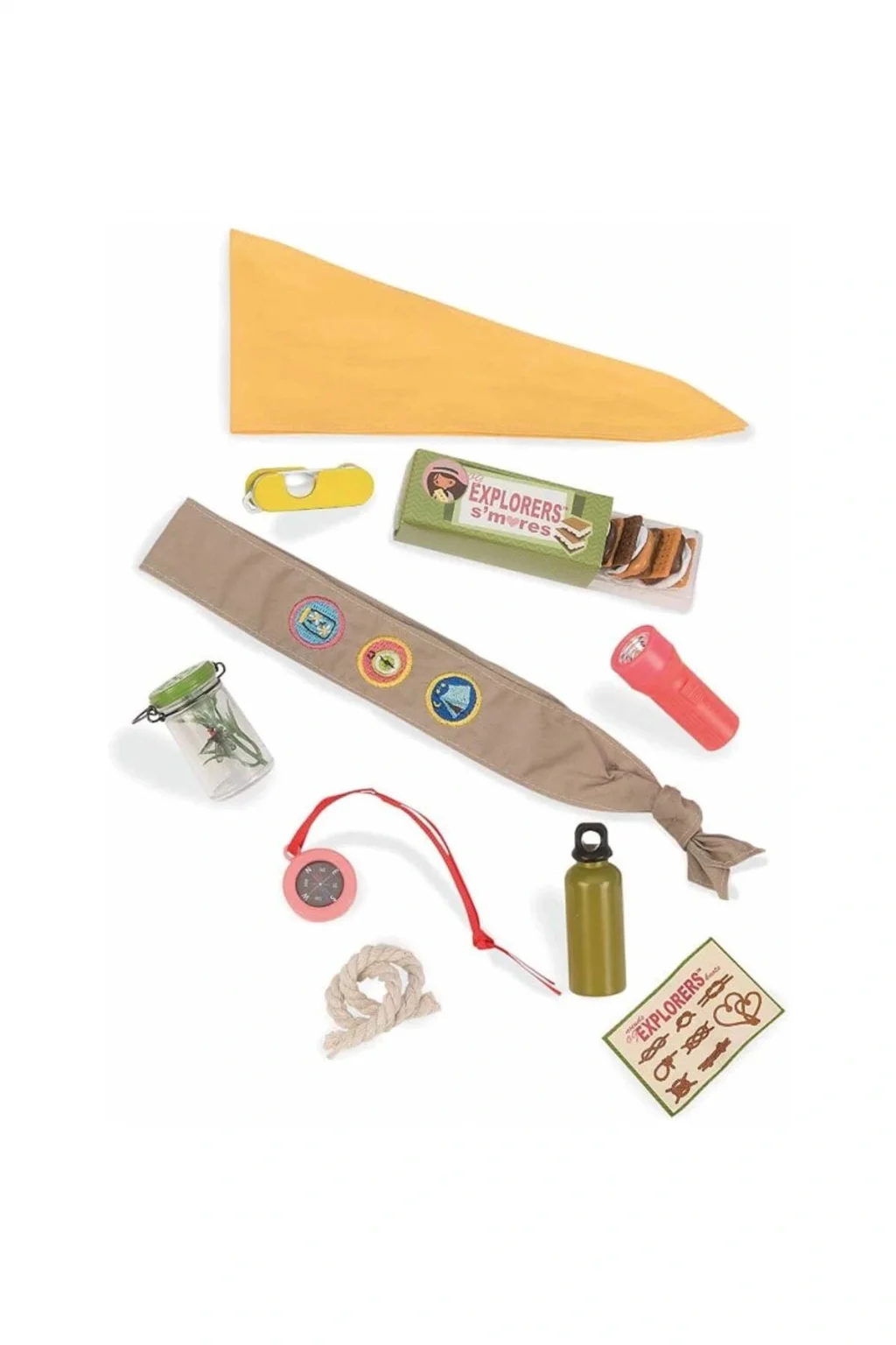 Our Generation İzci Seti Yaş Grubu: 3 Yaş üzeri için uygundur.; Ürün Özellikleri: Bir keşif yolculuğuna çıkmak istiyorsanız, bu izci setiyle doğru yoldasınız.; Ürün Kutu Ölçüleri: 25 x 4 x 32 cm ; Our Generation 46 cm bebekler için aksesuar seti.; ; Resimde görülen aksesuarlar dahildir.; Bebekler dahil değildir.; ; El feneri pil ile çalışır.; Paket içeriği: 1 adet mendil; 1 adet rozetli kanat; 1 adet ateşböceği kavanozu; 1 adet katlanabilir kamp çatal bıçak takımı; 1 adet çalışan el feneri (2 AG13 pil dahil); 1 adet halat düğüm; 1 adet pusula; 1 adet matara ; 1 adet bisküvi kutusu ; 1 adet düğüm talimatları;