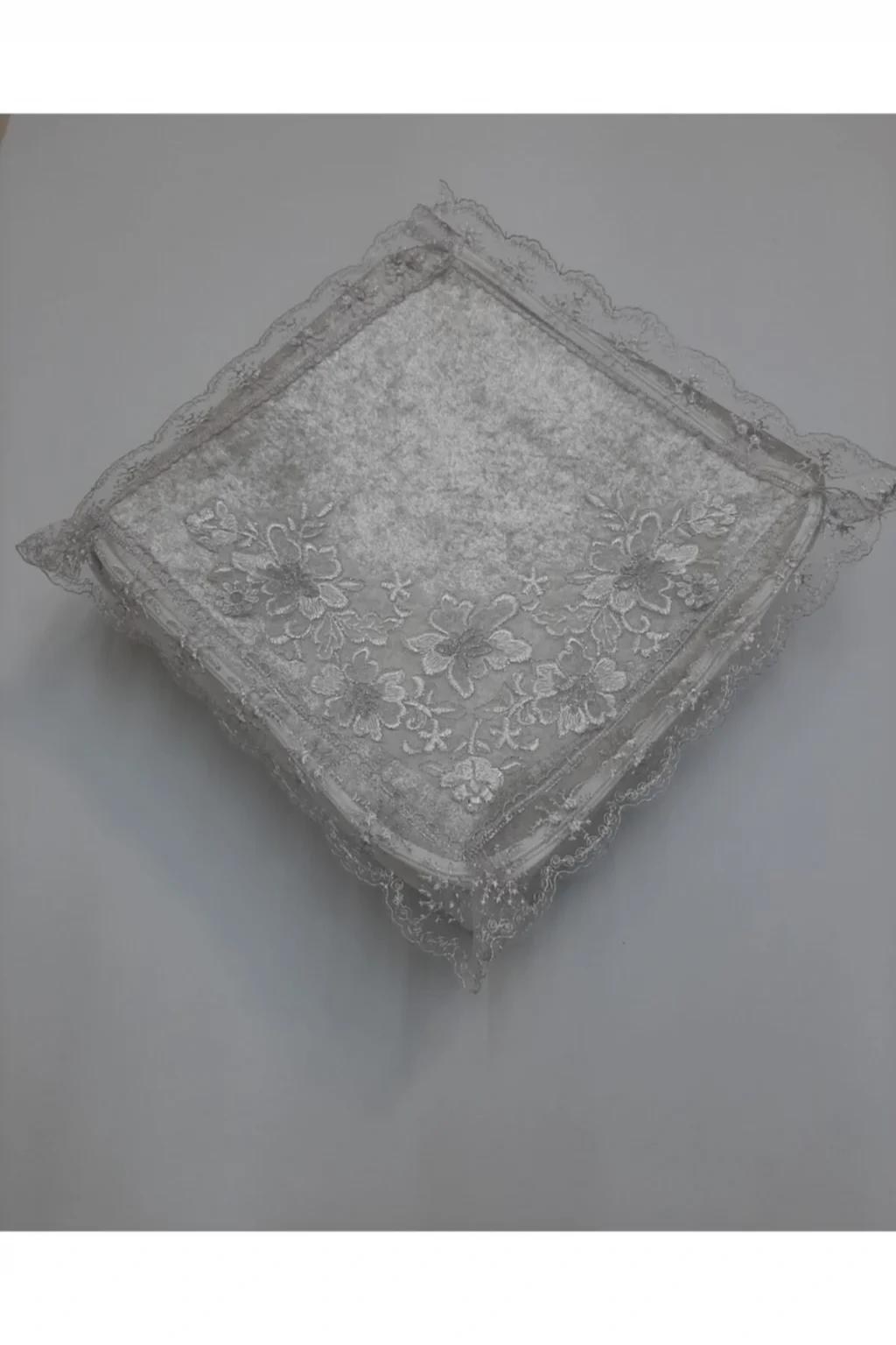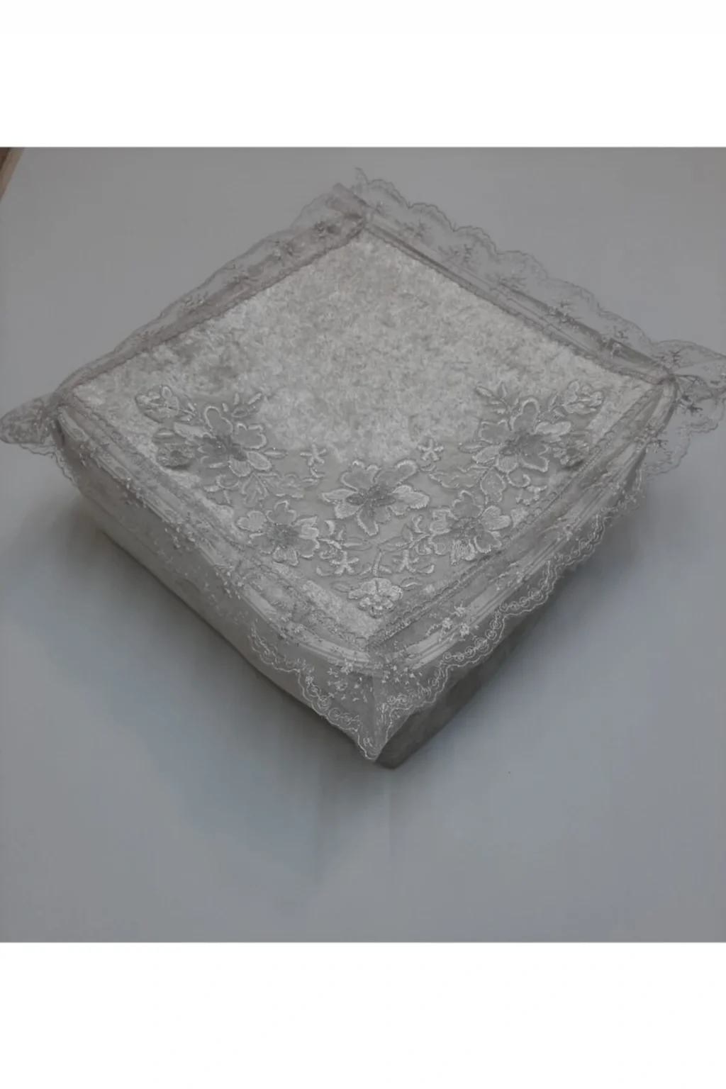 Genel Ürün Kadife Kumaş Süngerli Yemeni Hurç Fransız Güpürlü Dantel Çeyizlik Yemeni Hurcu Gri 36x36x18cm