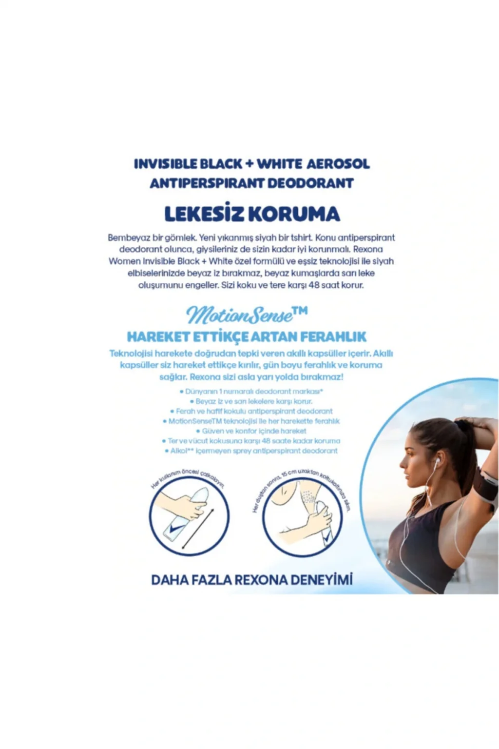 - Pratik kullanım için sprey formunda tasarlanmıştır, kolay ve hızlı uygulama imkanı sunar; - 150 ml boyutuyla uzun süreli kullanım sağlar, sık sık yeniden dolum yapma gereksinimini azaltır; - Invisible Black + White teknolojisi sayesinde, kıyafetlerde leke bırakmadan etkin bir şekilde ter ve kokuyu kontrol eder; - Hem siyah hem de beyaz giysilerde güvenle kullanılabilir, her türlü renk ve kumaşa uygunluk gösterir;