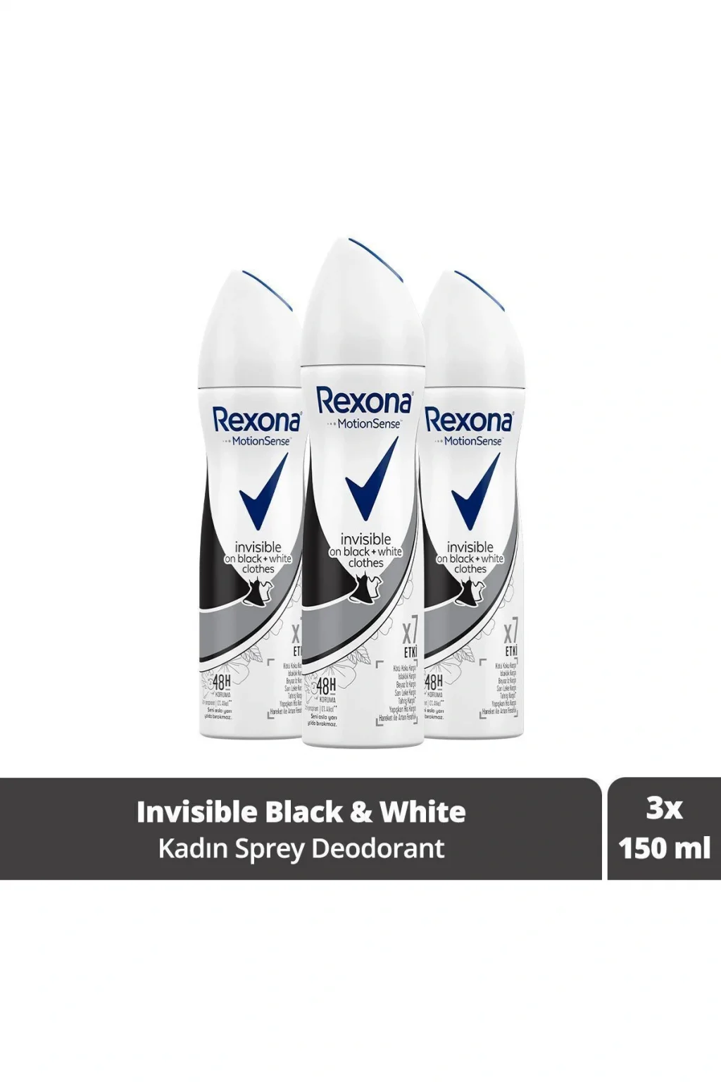Günlük kullanım için ideal, pratik ve kolay uygulama sağlayan sprey formunda deodorant; 150 ml'lik geniş hacmiyle uzun süreli kullanım imkanı sunar; Üç adet 150 ml'lik paket, ekonomik ve avantajlı bir seçenek olarak öne çıkar; Siyah ve beyaz giysilerde görünür iz bırakmayan formülü ile kıyafetlerinizi korur ve taze bir koku sağlar;