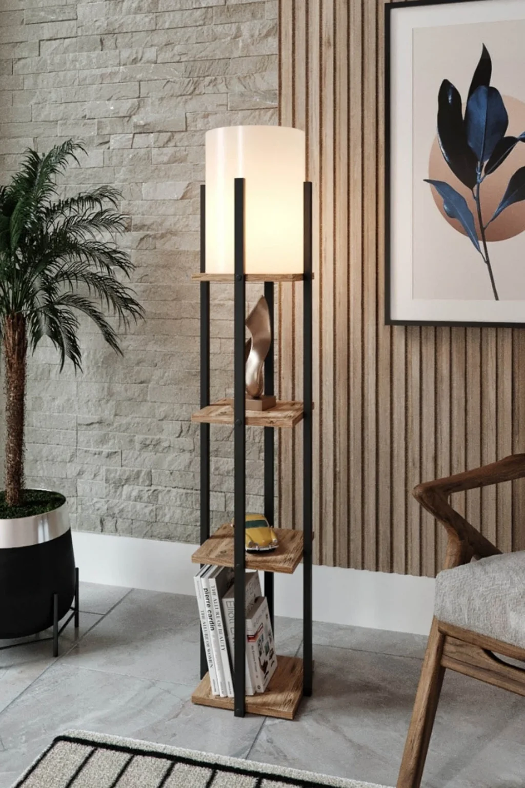 TEKNİK ÖLÇÜLER Genişlik: 25 cm Derinlik: 25 cm Yükseklik: 135 cm Raf Aralığı: 35 cm Else Dekoratif Raflı Lambader Demonte olarak sevk edilir. ; Else Raflı Lambader Avrupa Birliği Standartlarında 1. ; Sınıf Yonga Levha kullanılarak üretilmiş olup, E1 Normları Dahilinde Kanserojen Madde İçermez. ; Raflı Lambader Profilleri 1. ; Sınıf Mdf’den Üretilmiştir. ; Raflı Lambader Kenarları Pvc Bant ile Kaplıdır. ; Ürünün Kuruluş Şeması Ambalaj İçerisindedir. ; Allen Anahtar Sayesinde Kolay Kurulum Sağlanır. ; Duy Tipi: E 27 Max 20 W Tasarruflu veya Led Ampul ile Kullanımı Uygundur. ; Kablo Kesiti 2*0.50 Olup 2.00 Mt Uzunlukta ve Açma ve Kapama Anahtarlıdır. ; Abajur Malzemesi: 350 Mikron Pvc Folyo'dur.;